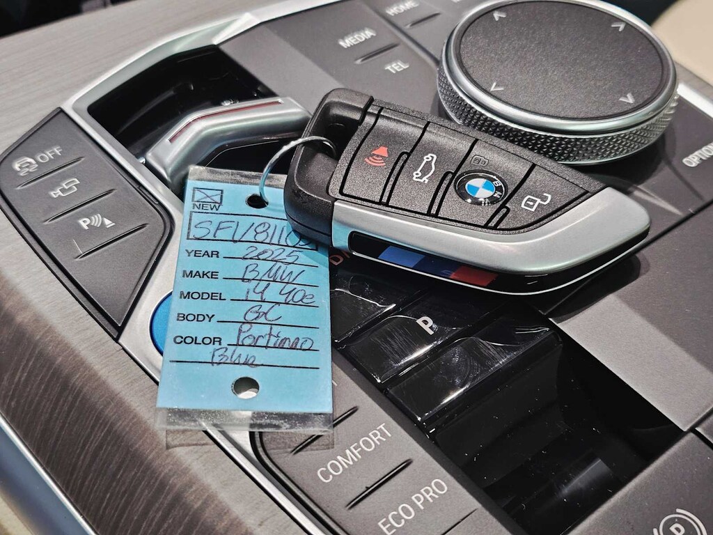 M SPORT PACKAGE M Sport Brakes w/Blue Calipers, Shadowline Exterior Trim, Wheels: 19 x 8.5 Fr & 19 x 9.0 Rr M Aero, Bicolor, Style 996M, Tires: 245/40R19 Fr & 255/40R19 Rr Summer, Staggered, Black Mirror Caps, Aluminum Rhombicle Anthracite Trim, M Steering Wheel, M Sport Package (337), Without Lines Designation Outside, Aerodynamic Kit, SHADOWLINE PACKAGE M Sport Brakes w/Blue Calipers, M Sport Package Pro, Full LED Lights w/Laserlight Taillights, Extended Shadowline Trim, Rear Spoiler, M Shadowline Lights, PREMIUM PACKAGE BMW Curved Display w/HUD, Heated Steering Wheel, harman/kardon® Surround Sound System, Iconic Sounds Electric, PARKING ASSISTANCE PACKAGE Active Park Distance Control, Parking View w/3D View (Surround View), Rear View Camera, Parking Assistant Plus, DRIVING ASSISTANCE PACKAGE Active Cruise Control, distance control to cruise control system w/automatic regulation of speed and distance in stop-and-go traffic and in congestion, down to a complete standstill, Automatic pullaway after short stops (< 3s). BMW xDrive40 with Portimao Blue Metallic exterior and Canberra Beige interior features a Electric Motor.