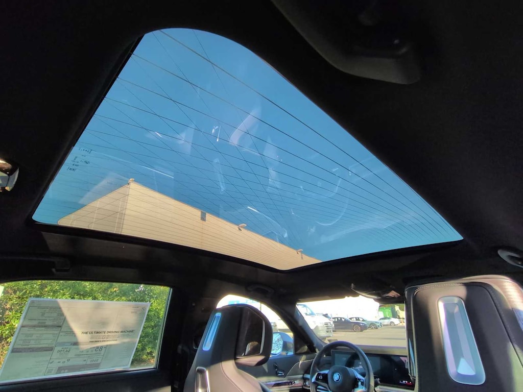 Connected Package Pro, Driving Assistance Professional Package (Active Driving Assistant Pro and Highway Assistant), Premium Package (Illuminated Kidney Grille, Parking Assistant Professional, and Surround View w/3D View), 18 Speakers, 4-Wheel Disc Brakes, ABS brakes, Adaptive suspension, Air Conditioning, Alloy wheels, Anti-whiplash front head restraints, Apple CarPlay & Android Auto Compatibility, Auto High-beam Headlights, Auto tilt-away steering wheel, Auto-dimming door mirrors, Auto-dimming Rear-View mirror, Auto-leveling suspension, Automatic temperature control, BMW Assist eCall, BMW TeleServices, Bowers & Wilkins Surround Sound, Brake assist, Bumpers: body-color, ConnectedDrive Services, Delay-off headlights, Driver door bin, Driver vanity mirror, Dual front impact airbags, Dual front side impact airbags, Electronic Stability Control, Emergency communication system: BMW Assist eCall, Enhanced USB & Bluetooth, Extended Merino Leather Upholstery, Exterior Parking Camera Rear, Four wheel independent suspension, Front anti-roll bar, Front Bucket Seats, Front Center Armrest, Front dual zone A/C, Front Massaging Seats, Front reading lights, Front Ventilated Seats, Fully automatic headlights, Garage door transmitter, Genuine wood dashboard insert, Head restraints memory, Heads-Up Display, Heated door mirrors, Heated front seats, Heated rear seats, Heated steering wheel, Heated Steering Wheel/Front & Rear Seats/Armrests, Iconic Sounds Electric, Illuminated entry, Leather steering wheel, Live Cockpit Pro w/Navigation, Low tire pressure warning, Memory seat, Multi-Functional Seats, Natural Interaction, Navigation system: BMW Maps Navigation, Occupant sensing airbag, Outside temperature display, Overhead airbag, Overhead console, Panic alarm, Passenger door bin, Passenger vanity mirror, Personal eSIM 5G, Power adjustable front head restraints, Power door mirrors, Power driver seat, Power passenger seat, Power steering, Power windows, Radio data system, Radio: FM Stereo, Rain sensing wipers, Rear air conditioning, Rear anti-roll bar, Rear audio controls, Rear dual zone A/C, Rear reading lights, Rear seat center armrest, Rear Window Blind, Rear window defroster, Remote keyless entry, Security system, SiriusXM Satellite Radio w/1 Year Subscription, Speed control, Speed-sensing steering, Speed-Sensitive Wipers, Sport steering wheel, Steering wheel memory, Steering wheel mounted audio controls, Telescoping steering wheel, Tilt steering wheel, Traction control, Trip computer, Variably intermittent wipers, Ventilated front seats, Weather band radio, Wheels: 19 x 8.5 Aero Gunmetal Grey (Style 904), Wheels: 20 x 9 Fr & 20 x 10.5 Rr Midnight Grey, and Wireless Device Charging.
