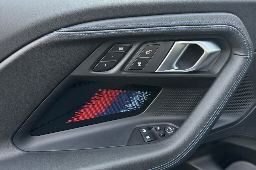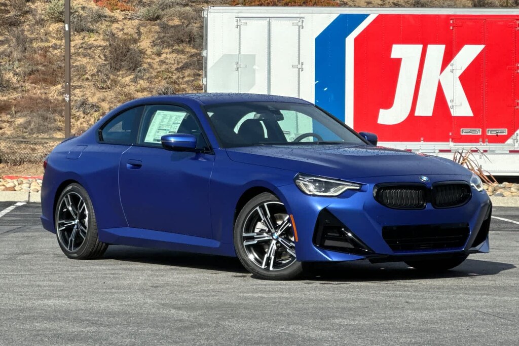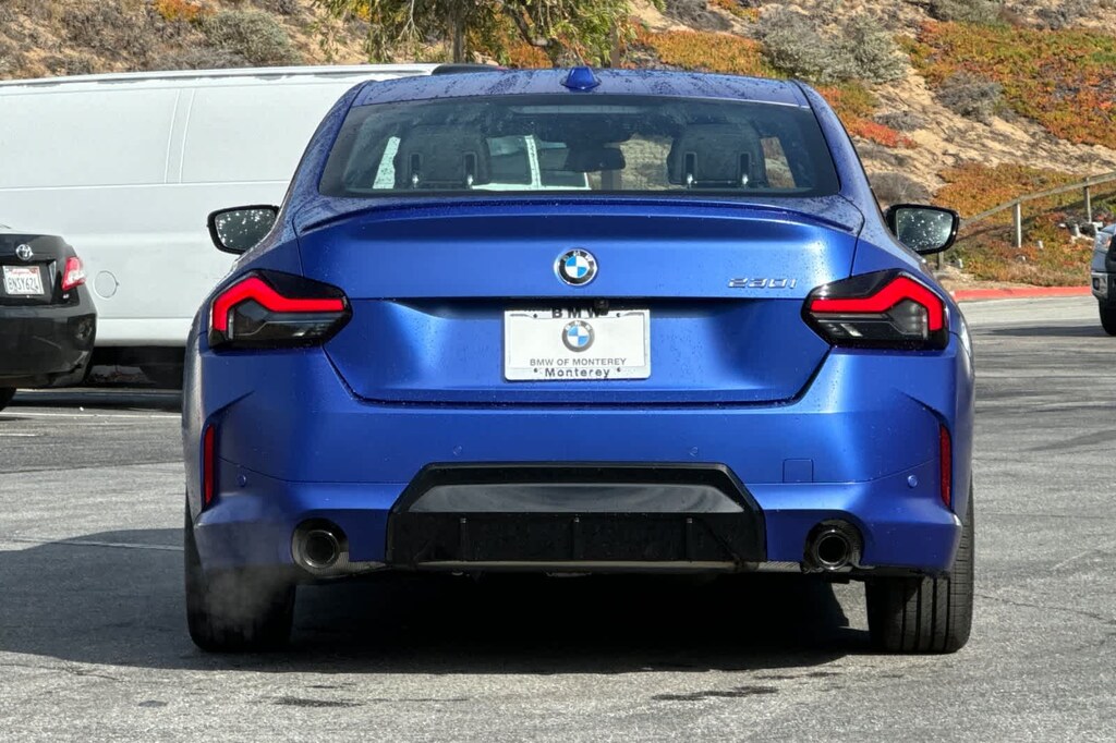 PREMIUM PACKAGE Remote Engine Start, Adaptive Full LED Lights, Live Cockpit Pro w/Head-Up Display, Heated Steering Wheel, Moonroof, Automatic High Beams, Universal Garage-Door Opener, M SPORT PACKAGE Wheels: 18 x 7.5 M Dual-Spoke, Style 848M, Bicolor, M Steering Wheel, Rear Spoiler, M Sport Pkg, Variable Sport Steering, M Fine Brushed Aluminum Interior Trim, Without Lines Designation Outside, M Sport Suspension, Aerodynamic Kit, harman/kardon® SURROUND SOUND SYSTEM. BMW 230i with Frozen Portimao Blue II Metallic exterior and Black w/Blue Stitching interior features a 4 Cylinder Engine with 255 HP at 5000 RPM*.