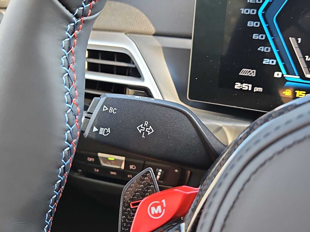 Connected Package Pro Limited Term, Lighting Package (Adaptive Full LED Lights and Automatic High Beams), 16 Speakers, 4-Wheel Disc Brakes, ABS brakes, Adaptive suspension, Air Conditioning, Alloy wheels, AM/FM radio: SiriusXM with 360L, AM/FM Stereo, Apple CarPlay and Android Auto Compatibility, Auto-dimming door mirrors, Auto-dimming Rear-View mirror, Automatic temperature control, BMW Assist ECall, BMW TeleServices, Brake assist, Bumpers: body-color, Carbon Fiber Trim, ConnectedDrive Services, Delay-off headlights, Driver door bin, Driver vanity mirror, Dual front impact airbags, Dual front side impact airbags, Electronic Stability Control, Emergency communication system: BMW Assist eCall, Exterior Parking Camera Rear, Four wheel independent suspension, Front anti-roll bar, Front Bucket Seats, Front Center Armrest, Front dual zone A/C, Front reading lights, Fully automatic headlights, Garage door transmitter, Hands-Free Bluetooth and USB Audio Connection, Harman/Kardon Surround Sound System, harman/kardonî Speakers, Head restraints memory, Heated door mirrors, Heated Front Seats, Heated front seats, Heated Steering Wheel, Illuminated entry, Knee airbag, Leather Shift Knob, Leather steering wheel, Live Cockpit Pro with Head-Up Display, Low tire pressure warning, Lumbar Support, M Shadowline Lights, M Sport Seats, Memory seat, Navigation, Navigation System, Occupant sensing airbag, Outside temperature display, Overhead airbag, Panic alarm, Parking Assistant, Passenger door bin, Passenger vanity mirror, Personal ESIM 5G, Power adjustable front head restraints, Power door mirrors, Power driver seat, Power Front Seats, Power moonroof, Power passenger seat, Power steering, Power windows, Radio data system, Rain sensing wipers, Rear air conditioning, Rear anti-roll bar, Rear seat center armrest, Rear window defroster, Remote Engine Start, Remote keyless entry, Security system, SiriusXM with 360L, Speed control, Speed-sensing steering, Speed-Sensitive Wipers, Split folding rear seat, Spoiler, Sport steering wheel, Steering wheel mounted audio controls, Tachometer, Telescoping steering wheel, Tilt steering wheel, Traction control, Trip computer, Turn signal indicator mirrors, Variably intermittent wipers, Vernasca Leather Upholstery, Wheels: 19 x 9.5 Front and 20 x 10.5 Rear Bicolor, and Widescreen Display.