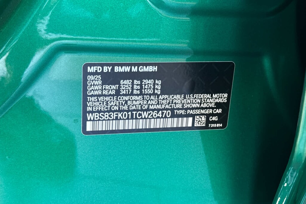 CARBON PACKAGE M Carbon Exterior Package, Mirror Caps, Carbon Fiber Reinforced Polymer Roof, Spoiler, EXECUTIVE PACKAGE Front Ventilated Seats, Parking View w/3D View (Surround View), Interior Camera, Power Rear Sunshade & Rear Side Window Shades, Front & Rear Heated Seats, BMW Iconic Glow Kidney Grille, Parking Assistant Plus, DRIVING ASSISTANCE PROFESSIONAL PACKAGE Lane Change Assistant, Driving Assistant Professional, Partial Automated Driving, Hands-free driving up to 40 mph on selected highways, Traffic Jam Assistant, BLACK, MERINO LEATHER UPHOLSTERY. BMW M Models with Isle of Man Green Metallic exterior and Black interior features a 8 Cylinder Engine with 717 HP at 5600 RPM*.