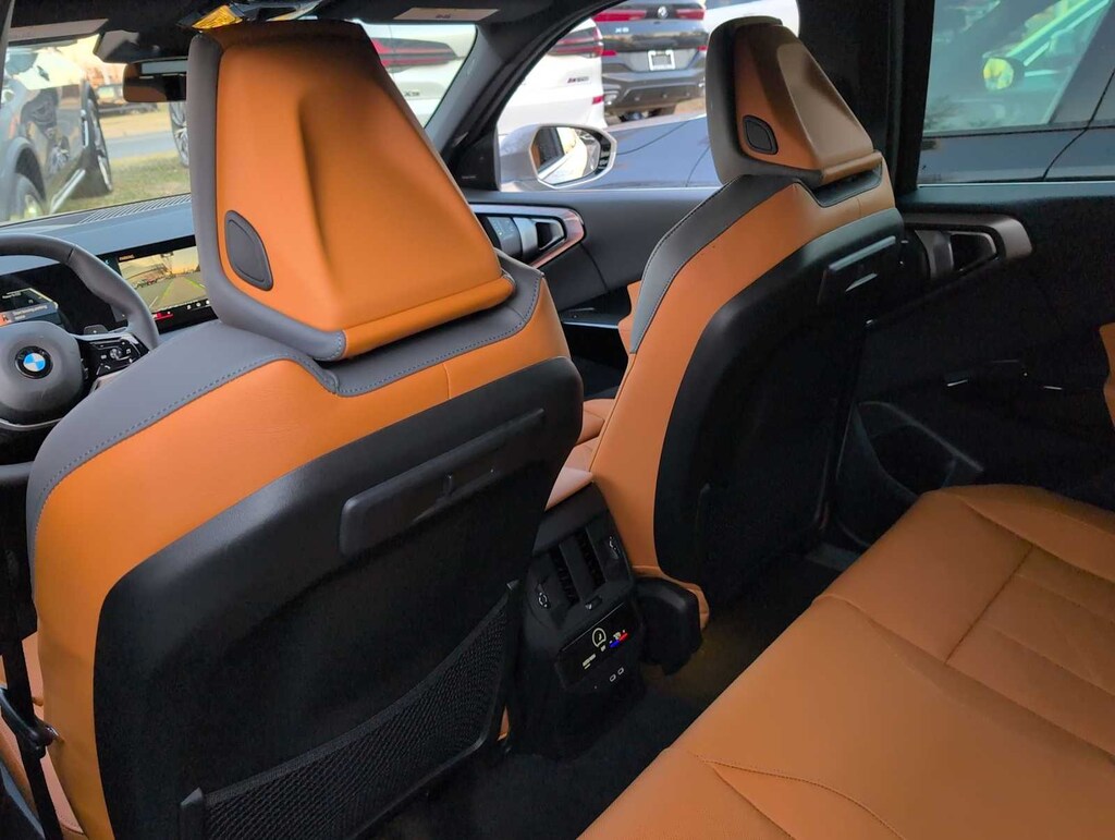 Driving Assistance Professional Package (Distance Control (ACC) with Steering Assistant, Driving Assistant Professional, Lane Change Assistant, and Traffic Jam Assistant), Premium Package (BMW Curved Display with HUD, Driving Assistance Plus, Heated Steering Wheel, Interior Camera, Panoramic Moonroof, Parking Assistant Plus, Parking View with 3D View (Surround View), Premium Content 1, Remote Engine Start, and Travel and Comfort System), 12 Speakers, 4-Wheel Disc Brakes, ABS brakes, Air Conditioning, Alloy wheels, AM/FM Radio, AM/FM radio: SiriusXM, Apple CarPlay and Android Auto Compatibility, Auto High-beam Headlights, Auto-dimming door mirrors, Auto-dimming Rear-View mirror, Automatic temperature control, BMW Assist ECall, BMW TeleServices, Brake assist, Bumpers: body-color, Delay-off headlights, Driver door bin, Driver vanity mirror, Dual front impact airbags, Dual front side impact airbags, Electronic Stability Control, Emergency communication system: BMW Assist eCall, Exterior Parking Camera Rear, Four wheel independent suspension, Front anti-roll bar, Front Bucket Seats, Front Center Armrest, Front reading lights, Fully automatic headlights, Garage door transmitter, Genuine wood console insert, Harman/Kardon Surround Sound System, Heated door mirrors, Heated Front Seats, Heated front seats, Hi-Fi Sound System, Illuminated entry, Knee airbag, Low tire pressure warning, Lumbar Support, Memory seat, Navigation, Navigation system: BMW Maps Navigation, Occupant sensing airbag, Outside temperature display, Overhead airbag, Overhead console, Panic alarm, Passenger door bin, Passenger vanity mirror, Personal ESIM 5G, Power door mirrors, Power driver seat, Power Front Seats, Power Liftgate, Power moonroof: Panoramic, Power passenger seat, Power steering, Power windows, Radio data system, Rain sensing wipers, Rear anti-roll bar, Rear Climate Control Console, Rear reading lights, Rear seat center armrest, Rear window defroster, Rear window wiper, Remote keyless entry, Security system, SiriusXM with 360L and 1 Year Trial Subscription, Speed control, Speed-Sensitive Wipers, Split folding rear seat, Spoiler, Sport Seats, Sport steering wheel, Steering wheel mounted audio controls, Tachometer, Telescoping steering wheel, Tilt steering wheel, Traction control, Trailer Hitch, Trip computer, Turn signal indicator mirrors, Variably intermittent wipers, Veganza Perforated and Quilted Upholstery, Wheels: 19 x 8.5 Aero Midnight Grey Bicolor, Wheels: 20 x 9.0 Front and 20 x 10.5 Rear Bicolor, and Wireless Device Charging.
