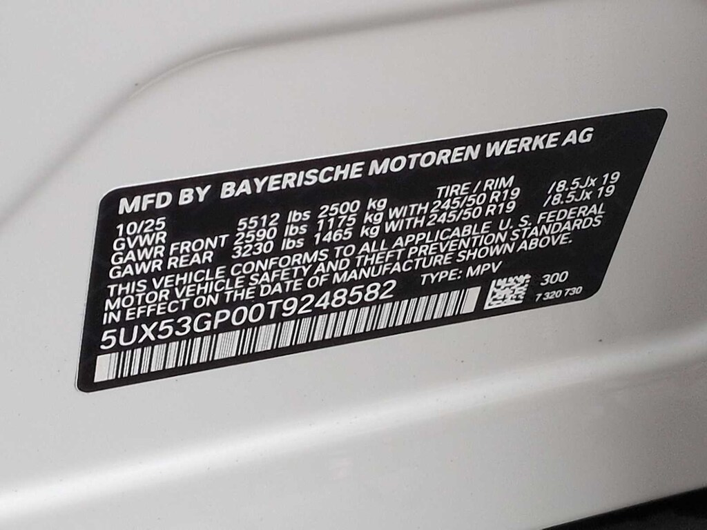 Convenience Package (Heated Steering Wheel, Panoramic Moonroof, Remote Engine Start, and Travel and Comfort System), 12 Speakers, 4-Wheel Disc Brakes, ABS brakes, Air Conditioning, Alloy wheels, AM/FM Radio, AM/FM radio: SiriusXM, Apple CarPlay and Android Auto Compatibility, Auto High-beam Headlights, Auto-dimming door mirrors, Auto-dimming Rear-View mirror, Automatic temperature control, BMW Assist ECall, BMW TeleServices, Brake assist, Bumpers: body-color, Delay-off headlights, Driver door bin, Driver vanity mirror, Dual front impact airbags, Dual front side impact airbags, Electronic Stability Control, Emergency communication system: BMW Assist eCall, Exterior Parking Camera Rear, Four wheel independent suspension, Front anti-roll bar, Front Bucket Seats, Front Center Armrest, Front reading lights, Fully automatic headlights, Garage door transmitter, Genuine wood console insert, Heated door mirrors, Heated Front Seats, Heated front seats, Hi-Fi Sound System, Illuminated entry, Knee airbag, Low tire pressure warning, Lumbar Support, Memory seat, Navigation, Navigation system: BMW Maps Navigation, Occupant sensing airbag, Outside temperature display, Overhead airbag, Overhead console, Panic alarm, Passenger door bin, Passenger vanity mirror, Personal ESIM 5G, Power door mirrors, Power driver seat, Power Front Seats, Power Liftgate, Power moonroof: Panoramic, Power passenger seat, Power steering, Power windows, Radio data system, Rain sensing wipers, Rear anti-roll bar, Rear Climate Control Console, Rear reading lights, Rear seat center armrest, Rear window defroster, Rear window wiper, Remote keyless entry, Security system, SiriusXM with 360L and 1 Year Trial Subscription, Speed control, Speed-Sensitive Wipers, Split folding rear seat, Spoiler, Sport Seats, Sport steering wheel, Steering wheel mounted audio controls, Tachometer, Telescoping steering wheel, Tilt steering wheel, Traction control, Trip computer, Turn signal indicator mirrors, Variably intermittent wipers, Veganza Perforated and Quilted Upholstery, Wheels: 19 x 8.5 Aero Midnight Grey Bicolor, and Wireless Device Charging.
