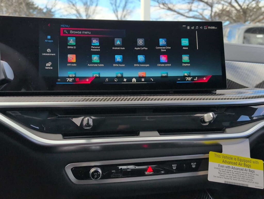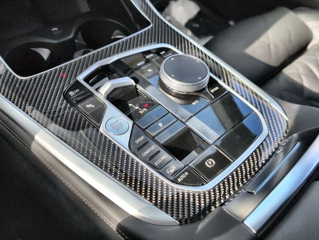 Climate Comfort Package (4-Zone Automatic Climate Control, Front and Rear Heated Seats, and Heated Front Seats, Armrests and Steering Wheel), Connected Package Pro Limited Term, 16 Speakers, 4-Wheel Disc Brakes, ABS brakes, Adaptive suspension, Air Conditioning, Alloy wheels, AM/FM radio: SiriusXM with 360L, AM/FM Stereo, Apple CarPlay and Android Auto Compatibility, Apple CarPlay Compatibility, Auto High-beam Headlights, Auto tilt-away steering wheel, Auto-dimming door mirrors, Auto-dimming Rear-View mirror, Automatic temperature control, BMW Assist ECall, BMW TeleServices, Brake assist, Bumpers: body-color, Carbon Fiber Trim, Compass, ConnectedDrive Services, Delay-off headlights, Driver door bin, Driver vanity mirror, Dual front impact airbags, Dual front side impact airbags, Electronic Stability Control, Emergency communication system: BMW Assist eCall, Exterior Parking Camera Rear, Four wheel independent suspension, Front anti-roll bar, Front Bucket Seats, Front Center Armrest, Front dual zone A/C, Front reading lights, Front Ventilated Seats, Fully automatic headlights, Garage door transmitter, Genuine wood console insert, Genuine wood dashboard insert, Genuine wood door panel insert, Harman/Kardon Surround Sound System, harman/kardonî Speakers, Head restraints memory, Heads-Up Display, Heated door mirrors, Heated Front Seats, Heated front seats, Illuminated entry, Knee airbag, Leather Shift Knob, Leather steering wheel, Live Cockpit Pro, Low tire pressure warning, Memory seat, Multi-Contour Seats, Navigation System, Occupant sensing airbag, Outside temperature display, Overhead airbag, Panic alarm, Passenger door bin, Passenger vanity mirror, Personal ESIM 5G, Power adjustable front head restraints, Power door mirrors, Power driver seat, Power Front Seats, Power moonroof, Power passenger seat, Power steering, Power windows, Radio data system, Rain sensing wipers, Rear anti-roll bar, Rear reading lights, Rear seat center armrest, Rear window defroster, Rear window wiper, Remote keyless entry, Security system, Sensafin Upholstery with Decor Stitching, SiriusXM with 360L and 1 Year Trial Subscription, Speed control, Speed-sensing steering, Speed-Sensitive Wipers, Split folding rear seat, Spoiler, Sport steering wheel, Steering wheel memory, Steering wheel mounted audio controls, Tachometer, Telescoping steering wheel, Tilt steering wheel, Traction control, Trip computer, Turn signal indicator mirrors, Variably intermittent wipers, Ventilated front seats, Wheels: 20 x 9 M Star-Spoke Bi-Color, and Wireless Device Charging.