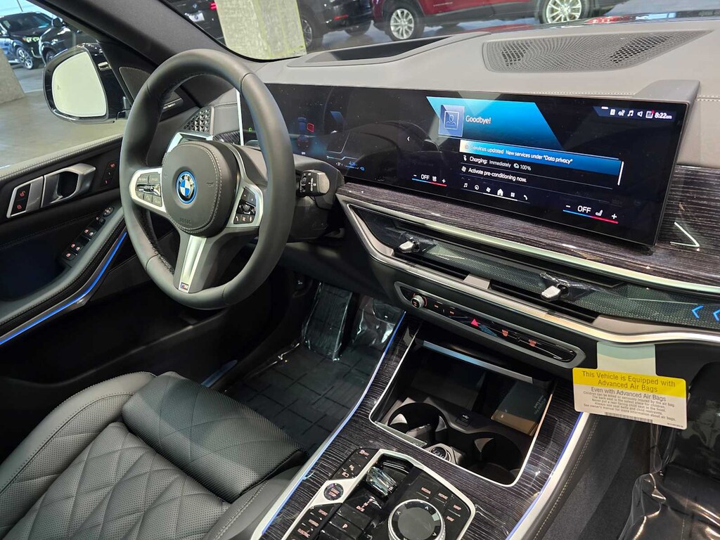 EXECUTIVE PACKAGE Soft-Close Automatic Doors, Live Cockpit Pro, HUD and video AR, Glass Controls, harman/kardon® Surround Sound System, Rear Manual Side Window Shades, Panoramic Sky Lounge LED Roof, M SPORT PACKAGE Wheels: 20 x 9 M Star-Spoke Bi-Color, Style 740M, Shadowline Exterior Trim, M Steering Wheel, M Sport Package (337), Without Lines Designation Outside, High-Gloss Shadowline Roof Rails, Aerodynamic Kit, DRIVING ASSISTANCE PROFESSIONAL PACKAGE Lane Change Assistant, Distance Control (ACC) w/Steering Assistant, Driving Assistant Professional, Partial Automated Driving, hands-free driving up to 85 mph on selected highways (8 years of service included), Highway Assistant Limited Term, CLIMATE COMFORT PACKAGE 4-Zone Automatic Climate Control, Front Ventilated Seats, Multi-Contour Seats, Front & Rear Heated Seats, Heated Front Seats, Armrests & Steering Wheel, FRONT MASSAGING SEATS, PARKING ASSISTANCE PACKAGE automatic park assistant, backup assistant and trailer assistant, Parking Assistant Professional, Active Park Distance Control, Parking View w/3D View (Surround View), TRAILER HITCH. BMW xDrive50e with Carbon Black Metallic exterior and Black interior features a Straight 6 Cylinder Engine with 483 HP at 5000 RPM*.