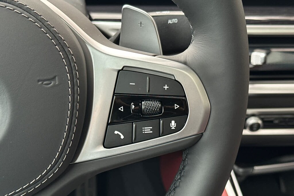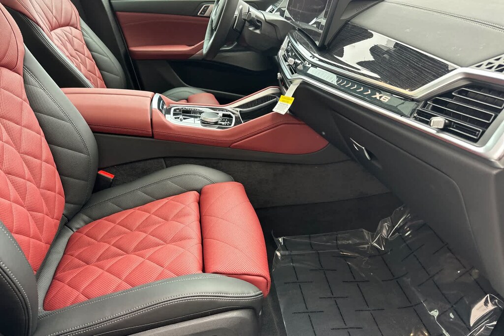 DRIVING ASSISTANCE PROFESSIONAL PACKAGE Lane Change Assistant, Distance Control (ACC) w/Steering Assistant, Driving Assistant Professional, Partial Automated Driving, hands-free driving up to 85mph on selected highways (8 years of service included), Limited Term Highway Assistant, Limited term, CLIMATE COMFORT PACKAGE 4-Zone Automatic Climate Control, Front Ventilated Seats, Multi-Contour Seats, Front & Rear Heated Seats, Heated Front Seats w/Armrests & Steering Wheel, PREMIUM PACKAGE Remote Engine Start, Live Cockpit Pro, navigation, harman/kardon® Surround Sound System, M SPORT PROFESSIONAL PACKAGE M Sport Package Pro, Extended Shadowline Trim, M Sport Exhaust System, M Sport Brakes w/Red Calipers, M Shadowline Lights, Illuminated Kidney Grille, 2-AXLE AIR SUSPENSION, PARKING ASSISTANCE PACKAGE Automatic Park Assistant, Active Park Distance Control, Backup Assistant, Parking View w/3D View (Surround View), Rear View Camera, Parking Assistant Professional, Trailer Assistant, TRAILER HITCH, SPACE-SAVER SPARE. BMW xDrive40i with Alpine White exterior and Tacora Red interior features a Straight 6 Cylinder Engine with 375 HP at 5200 RPM*.