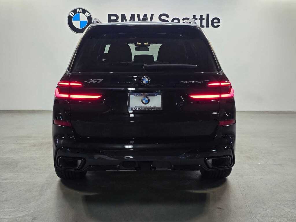 EXECUTIVE PACKAGE Heated & Cooled Cup Holders, Soft-Close Automatic Doors, Glass Controls, harman/kardon® Surround Sound System, Front Massaging Seats, Electric Rear Side Window Shades, Panoramic Sky Lounge LED Roof, M SPORT PACKAGE Shadowline Exterior Trim, Wheels: 21 x 9.5 Dual-Spoke Bicolor Orbit Grey, (Style 754M), Fineline Black Wood Trim, M Steering Wheel, Anthracite Alcantara Headliner, M Sport Package (337), Without Lines Designation Outside, Roof Rails in High-Gloss Shadowline, Aerodynamic Kit, DRIVING ASSISTANCE PROFESSIONAL PACKAGE automatic park assistant, back up assistant, trailer assistant and parking view w/3D view (surround view), Lane Change Assistant, Distance Control (ACC) w/Steering Assistant, Driving Assistant Professional, Partial Automated Driving, Limited Term Highway Assistant, Highway assistant adds hands-off driving up to 85 mph on limited access highways, The driver remains responsible for the vehicle and must keep their view on the road, CLIMATE COMFORT PACKAGE Front Ventilated Seats, 5-Zone Automatic Climate Control, Front & Rear Heated Seats, WHEELS: 22 X 9.5 FR & 22 X 10.5 RR V-SPOKE (Style 755M), Jet black, Tires: 275/40R22 Fr & 315/35R22 Rr Runflat, Staggered summer, Increased Top Speed Limiter, TRAILER HITCH. BMW xDrive40i with Black Sapphire Metallic exterior and Silverstone interior features a Straight 6 Cylinder Engine with 375 HP at 5200 RPM*.