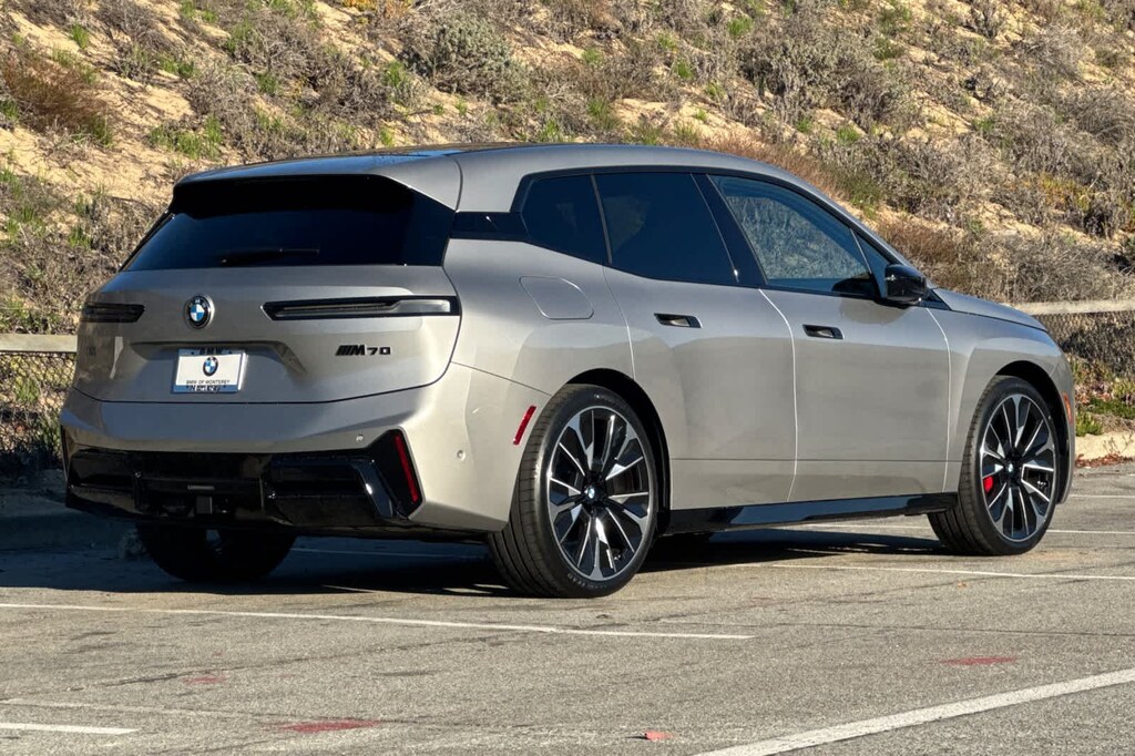 DRIVING ASSISTANCE PROFESSIONAL PACKAGE Lane Change Assistant, Distance Control (ACC) w/Steering Assistant, Partial Automated Driving, Parking Assistant Professional, Driving Assistant Professional, Highway Assistant Limited Term, Adds hands-off driving up to 85 MPH on limited access highways (8 years of service included), 23 X 9.5 INDIVIDUAL AERO BICOLOR WHEELS (STYLE 1028I) Increased Top Speed Limiter, 275/35R23 Summer Tires, EXECUTIVE PACKAGE Soft-Close Automatic Doors, Glass Controls, TRAILER HITCH. BMW M70 with Space Silver Metallic exterior and Black/Atlas Grey interior features a Electric Motor.