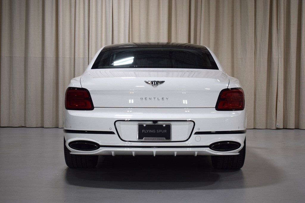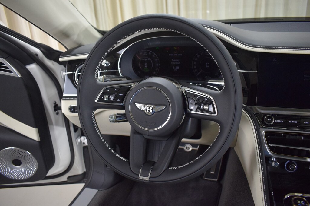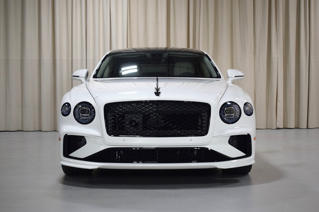 2025 Bentley Flying Spur Speed in Glacier White exterior with Linen interior. The Bentley Flying Spur Speed features a 4.0L Twin-Turbo Hybrid Engine with 771 hp.