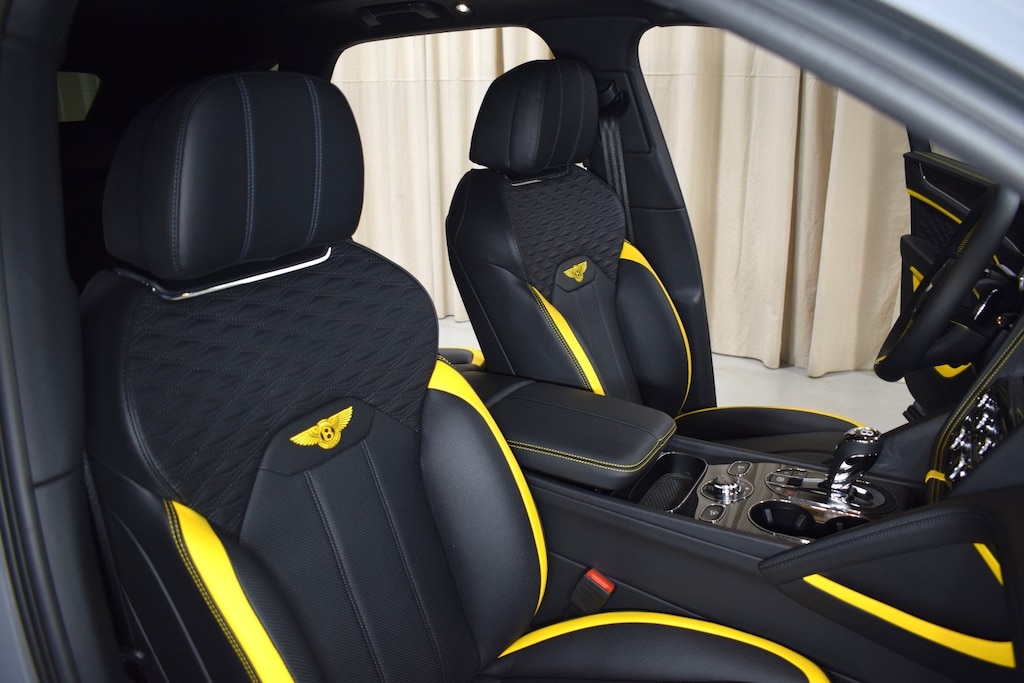 2026 Bentley Bentayga Speed in Cambrian Grey exterior with Yellow interior. The Bentley Bentayga Speed features a 4.0L Twin-Turbo V8 Engine with 641 hp.