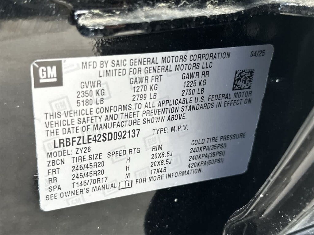 - Front tires: 245/45HR20.0