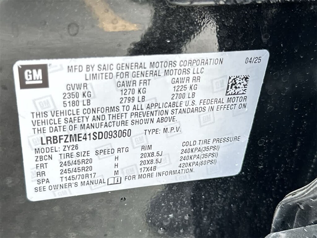 - Front tires: 245/45HR20.0