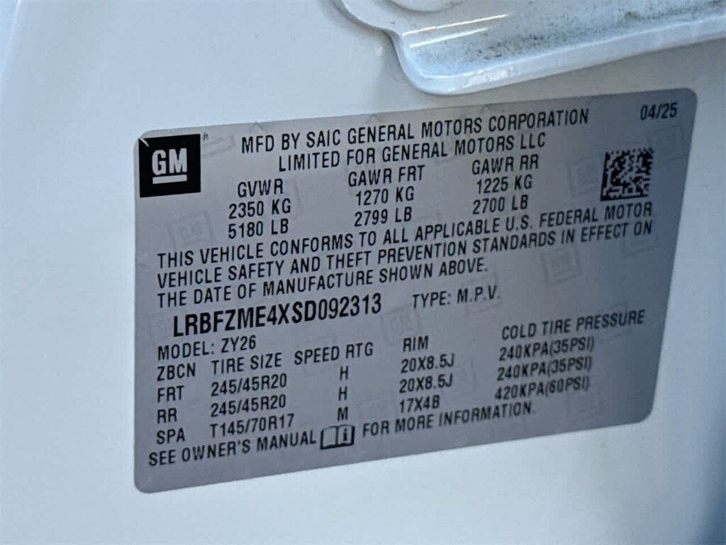 - Front tires: 245/45HR20.0