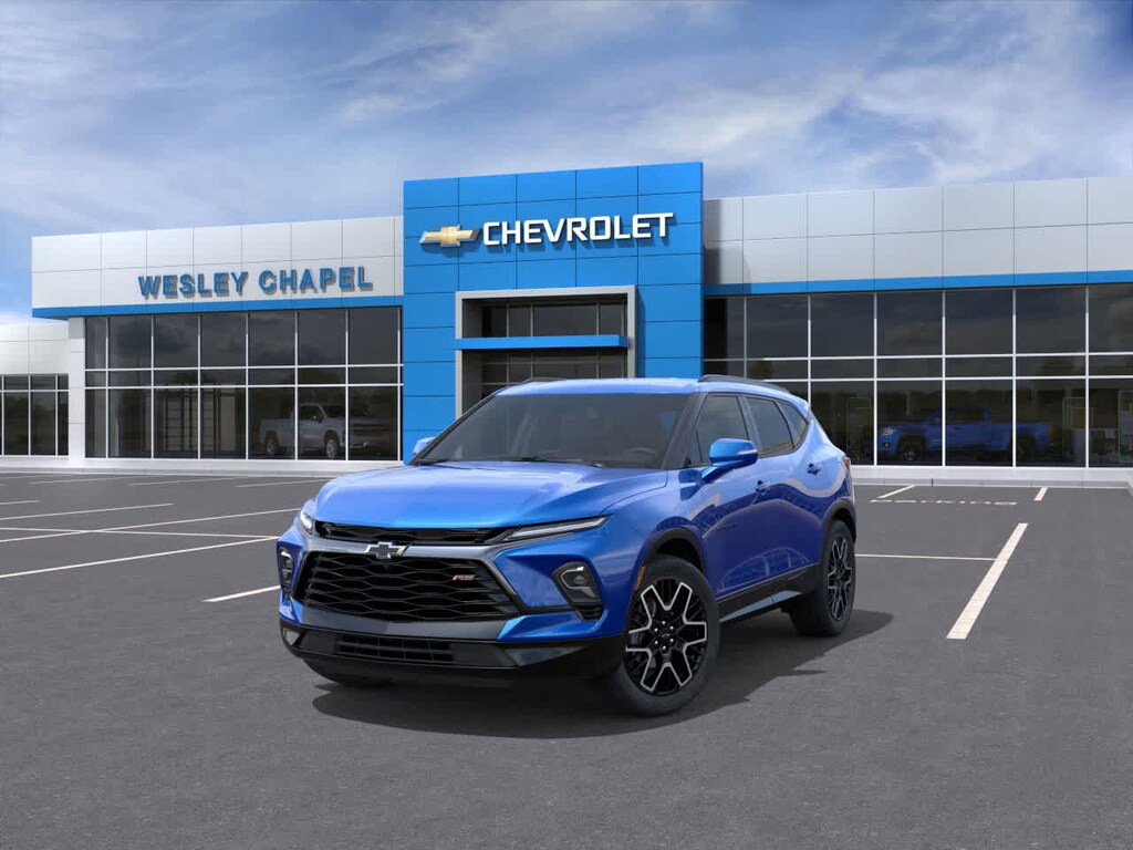Recent Arrival! HOME OF THE LIFETIME WARRANTY! BUY WITH CONFIDENCE! WE LOVE TRADES! HASSLE FREE FINANCE PLANS FOR EVERYONE! PLEASE CALL TO ENSURE AVAILABLITY AS OUR INVENTORY CHANGES BY THE HOUR. Riptide Blue Metallic 2025 Chevrolet Blazer FWD 9-Speed Automatic with Overdrive 3.6L V6 SIDI **TOUCHLESS DELIVERY - BUY FROM CONVENIENCE OF YOUR HOME**, HTTPS://WWW.DRIVEWAY.COM, HTTPS://WWW.CHEVYOFWESLEYCHAPEL.COM, 3.49 Final Drive Axle Ratio, 4-Wheel Disc Brakes, 6-Way Power Front Passenger Seat Adjuster, 8 Speakers, 8-Way Power Driver Seat Adjuster, ABS brakes, Adaptive Cruise Control, Air Conditioning, Alloy wheels, AM/FM radio: SiriusXM with 360L, Apple CarPlay/Android Auto, Auto High-beam Headlights, Auto-dimming door mirrors, Auto-dimming Rear-View mirror, Automatic temperature control, Bose Premium 8-Speaker Audio System Feature, Brake assist, Bumpers: body-color, Child-Seat-Sensing Airbag, Compass, Delay-off headlights, Driver Confidence II Package, Driver door bin, Driver vanity mirror, Dual front impact airbags, Dual front side impact airbags, Electronic Stability Control, Emergency communication system: OnStar and Chevrolet connected services capable, Enhanced Automatic Emergency Braking, Enhanced Convenience Package, Four wheel independent suspension, Front anti-roll bar, Front Bucket Seats, Front Center Armrest, Front dual zone A/C, Front reading lights, Fully automatic headlights, Garage door transmitter, HD Surround Vision, Heated door mirrors, Heated front seats, Heated Rear Outboard Seating Positions, Heated steering wheel, Illuminated entry, Knee airbag, Leather Shift Knob, Leather steering wheel, Low tire pressure warning, Navigation System, Occupant sensing airbag, Outside temperature display, Overhead airbag, Overhead console, Panic alarm, Passenger door bin, Passenger vanity mirror, Perforated Leather-Appointed Seat Trim, Power door mirrors, Power Driver Lumbar Control, Power driver seat, Power Liftgate, Power passenger seat, Power steering, Power windows, Preferred Equipment Group 1RS, Premium All-Weather Floor Mats, Premium audio system: Chevrolet Infotainment 3 Premium, Radio data system, Radio: Chevrolet Infotainment 3 Premium System, Rear anti-roll bar, Rear Camera Mirror, Rear Camera Mirror Washer, Rear reading lights, Rear seat center armrest, Rear window defroster, Rear window wiper, Remote keyless entry, Safety Alert Seat, Security system, Speed control, Speed-sensing steering, Split folding rear seat, Spoiler, Steering wheel mounted audio controls, Stop-Start Engine Control System, Tachometer, Telescoping steering wheel, Tilt steering wheel, Traction control, Trip computer, Turn signal indicator mirrors, Variably intermittent wipers, Voltmeter.