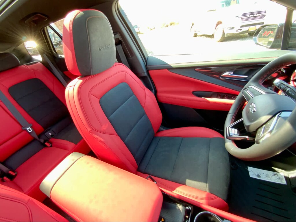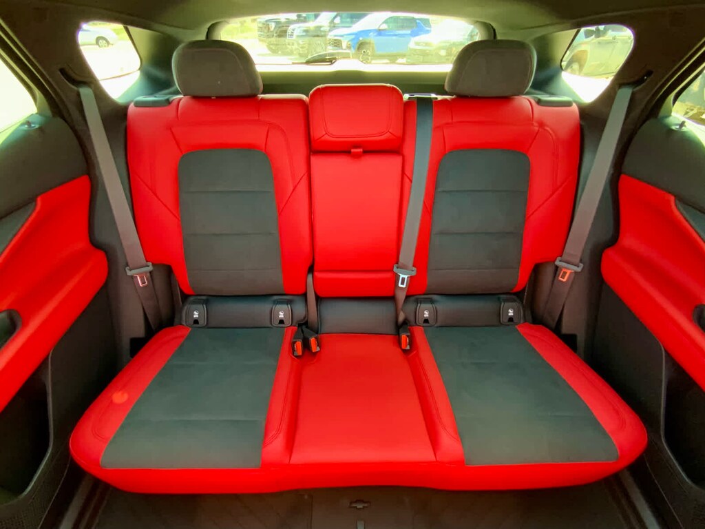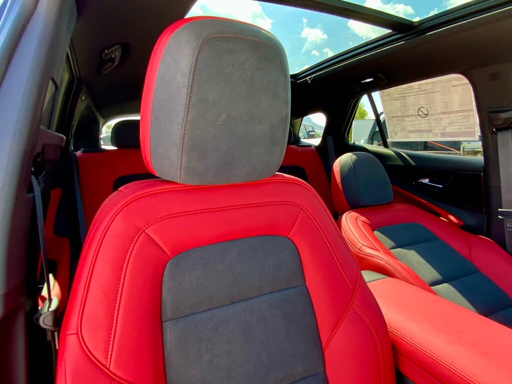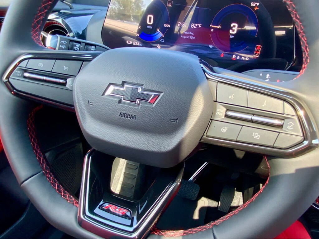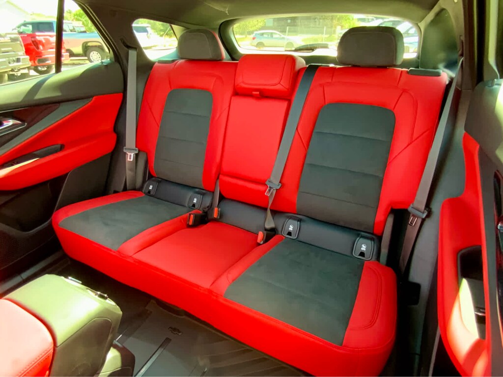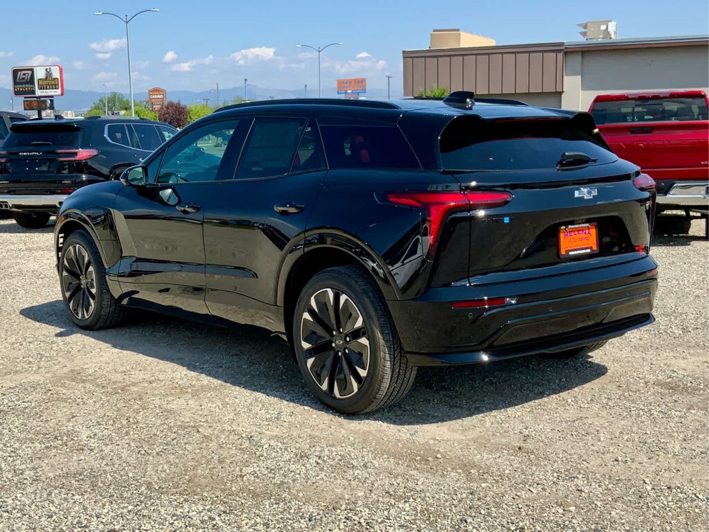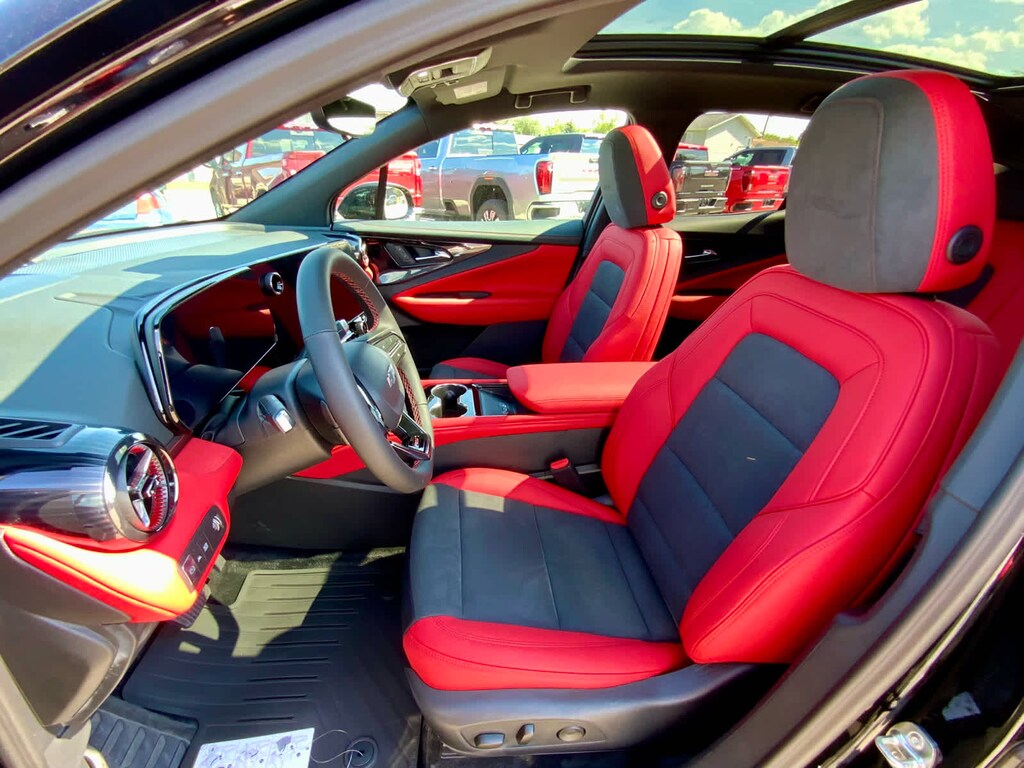 with power sunshade, includes (UV6) Head-Up Display, (KCB) heated rear outboard passenger seat cushions, (DRZ) Rear Camera Mirror and (CMO) Heated Wiper Park, includes (VLI) all-weather cargo mat and (VAV) all-weather floor mats LPO, (STD). Chevrolet AWD RS with Black exterior and Black/Adrenaline Red interior features a Electric Motor. Approx. Original Base Sticker Price: $57,900*.