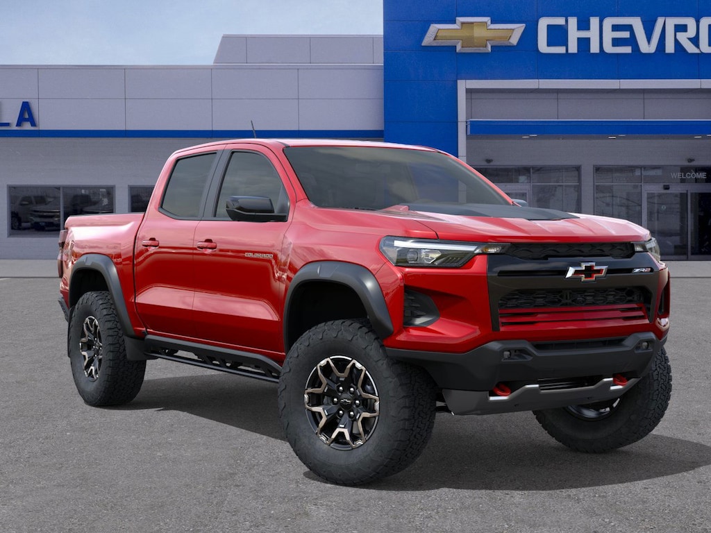 includes (KSG) Adaptive Cruise Control, (UKK) Rear Pedestrian Alert and (UV2) HD Surround Vision (Includes (UQA) Bose Premium Audio System.), SUNROOF, POWER SLIDING GLASS WITH MANUAL SHADE, includes Chevrolet logo, (dealer-installed), (310 hp [231 kW] @ 5600 rpm, 430 lb-ft of torque [583 Nm] @ 3000 rpm) (STD), (STD). Chevrolet 4WD ZR2 with Radiant Red Tintcoat exterior and Jet Black/Artemis interior features a 4 Cylinder Engine with 310 HP at 5600 RPM*.