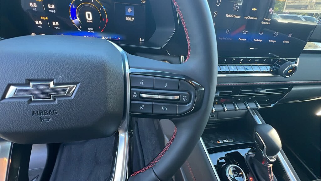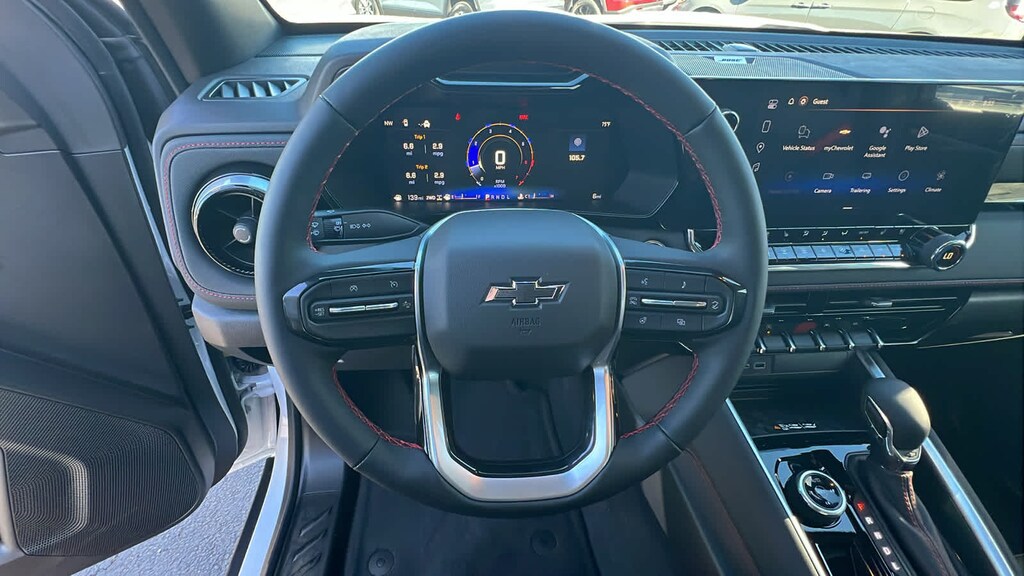 TECHNOLOGY PACKAGE includes (KSG) Adaptive Cruise Control, (UKK) Rear Pedestrian Alert and (UV2) HD Surround Vision (Includes (UQA) Bose Premium Audio System.), SUNROOF, POWER SLIDING GLASS WITH MANUAL SHADE, Z71 CONVENIENCE PACKAGE III includes (A45) Driver Memory Settings, (DA5) Rear center arm rest, (E90) Driver seat back pocket, (KI3) Heated steering wheel and (KU9) Ventilated front seats (Also includes (HUQ) Perforated leather-appointed front seats.), BEDLINER, SPRAY-ON, BLACK WITH CHEVROLET LOGO, ENGINE, TURBOMAX (310 hp [231 kW] @ 5600 rpm, 430 lb-ft of torque [583 Nm] @ 3000 rpm) (STD), TRANSMISSION, 8-SPEED AUTOMATIC (STD). Chevrolet 4WD Z71 with Summit White exterior and Jet Black/Adrenaline Red interior features a 4 Cylinder Engine with 310 HP at 5600 RPM*.