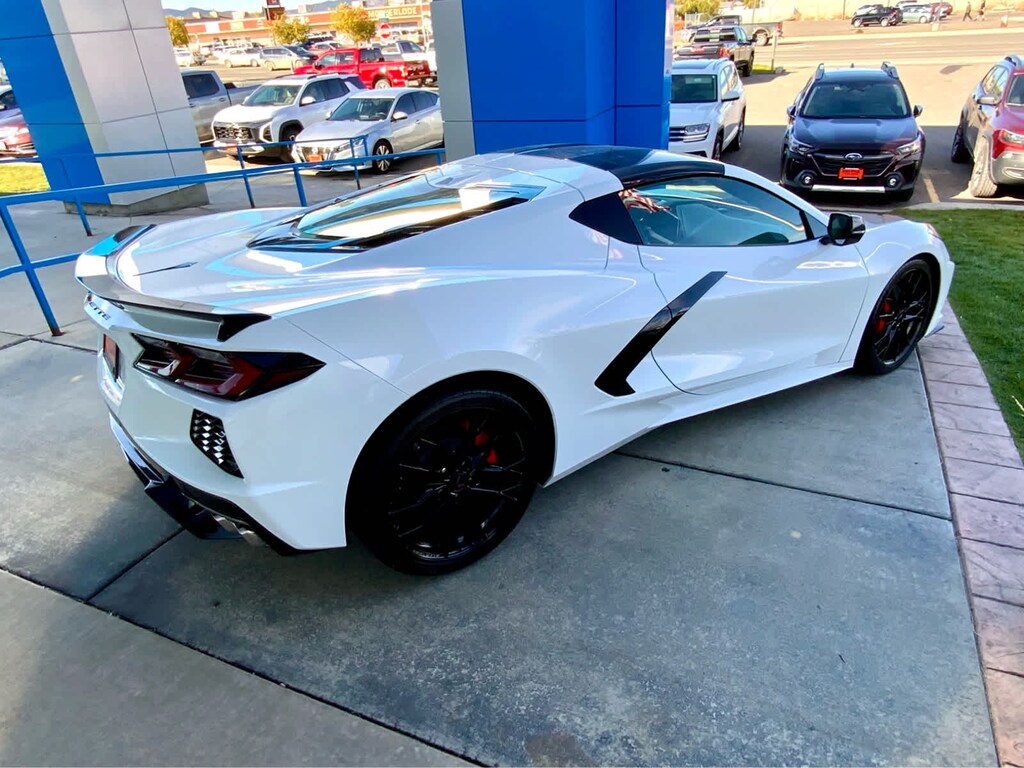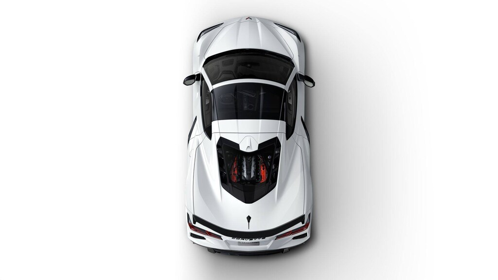 ROOF PANEL, TRANSPARENT, REMOVABLE, WHEELS, 19" X 8.5" (48.3 CM X 21.6 CM) FRONT AND 20" X 11" (50.8 CM X 27.9 CM) REAR 20-SPOKE GLOSS BLACK FORGED ALUMINUM, LOW-PROFILE REAR SPOILER AND FRONT SPLITTER, Variable Valve Timing (VVT), Active Fuel Management (AFM) (490 hp [365.4 kW] @ 6450 rpm, 465 lb-ft of torque [627.8 N-m] @ 5150 rpm) (STD), (STD). Chevrolet 2LT with Arctic White exterior and Jet Black interior features a 8 Cylinder Engine with 490 HP at 6450 RPM*. Approx. Original Base Sticker Price: $83,800*.