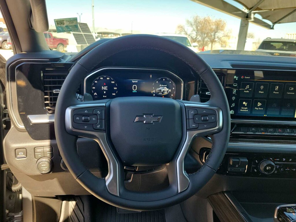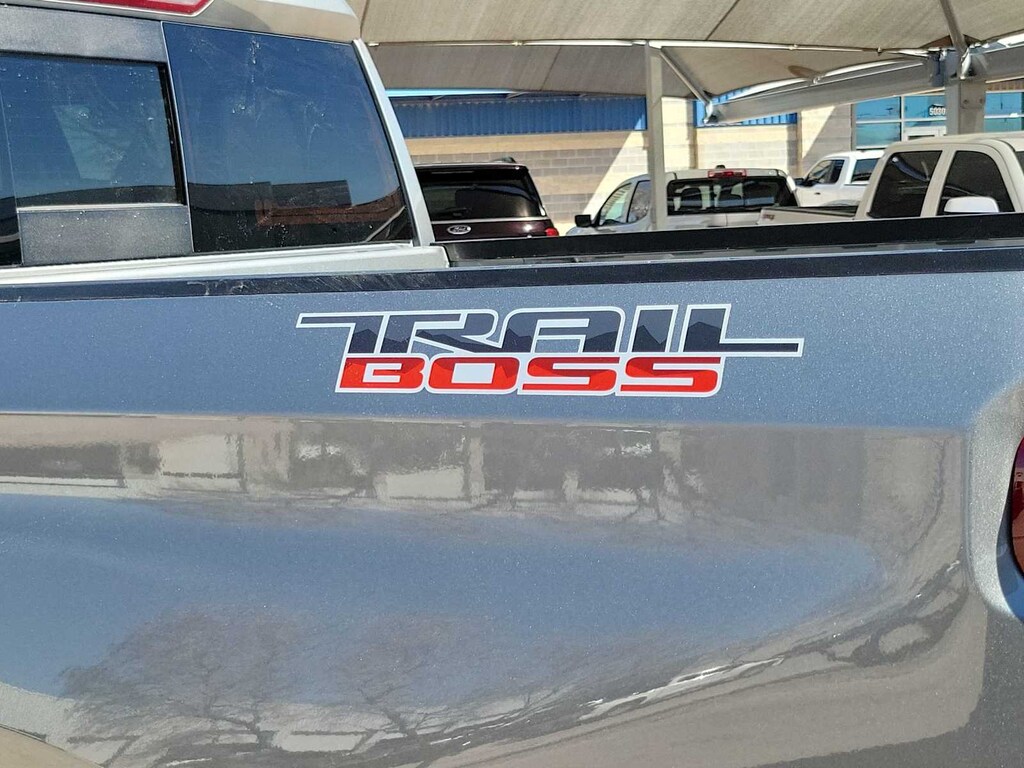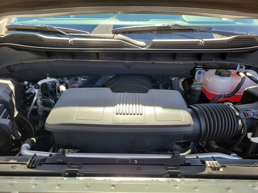 ENGINE, 5.3L ECOTEC3 V8 (355 hp [265 kW] @ 5600 rpm, 383 lb-ft of torque [518 Nm] @ 4100 rpm); featuring available Dynamic Fuel Management that enables the engine to operate in 17 different patterns between 2 and 8 cylinders, depending on demand, to optimize power delivery and efficiency (Includes (N10) dual exhaust.), CONVENIENCE PACKAGE II includes (UG1) Universal Home Remote, (A48) rear sliding power window, (PZ8) Hitch Guidance with Hitch View and (UET) Trailering App Includes (UQA) Bose Premium Sound System. SEATS, FRONT BUCKET with center console (Includes (EPH) Electronic Transmission Range Selector (console mounted). AUDIO SYSTEM, CHEVROLET INFOTAINMENT 3 PREMIUM SYSTEM with Google built-in compatibility (select service plan required, terms and limitations apply) including navigation capability, 13.4 diagonal HD color touchscreen, includes multi-touch display, AM/FM stereo, Bluetooth® streaming audio for music and most phones; featuring Wireless Apple CarPlay® and Wireless Android Auto® capability for compatible phones, advanced voice recognition, in-vehicle apps, personalized profiles for infotainment and vehicle settings (STD), TRANSMISSION, 10-SPEED AUTOMATIC with Electronic Transmission Range Selector, (ETRS), electronically controlled with overdrive, tow/haul mode and steering column paddle shifters. Includes Cruise Grade Braking and Powertrain Grade Braking, SEAT, UP-LEVEL REAR WITH STORAGE PACKAGE 60/40 folding bench for Crew Cab models, includes full-length bench seat, seatback storage on left and right side, center fold out armrest with 2 cupholders, full cab width under-seat storage, (includes child seat top tether anchor). Chevrolet LT Trail Boss with Sterling Gray Metallic exterior and Jet Black interior features a 8 Cylinder Engine with 310 HP at 5600 RPM*.
