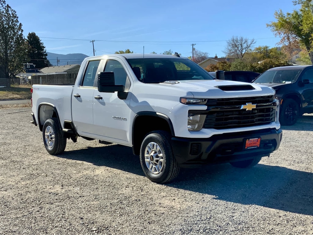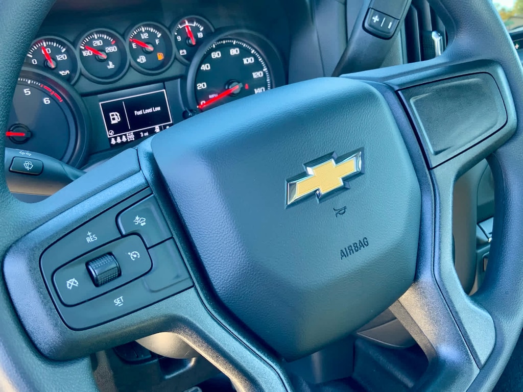 WHEELS, 17" (43.2 CM) MACHINED ALUMINUM, 7" diagonal HD color touchscreen, AM/FM stereo, Bluetooth® audio streaming for 2 active devices, voice command pass-through to phone, Wireless Apple CarPlay® and Wireless Android Auto® compatibility (STD), with Direct Injection and Variable Valve Timing, gasoline, (401 hp [299 kW] @ 5200 rpm, 464 lb-ft of torque [629 N-m] @ 4000 rpm) (STD), (STD). Chevrolet Work Truck with Summit White exterior and Jet Black interior features a 8 Cylinder Engine with 401 HP at 5200 RPM*.