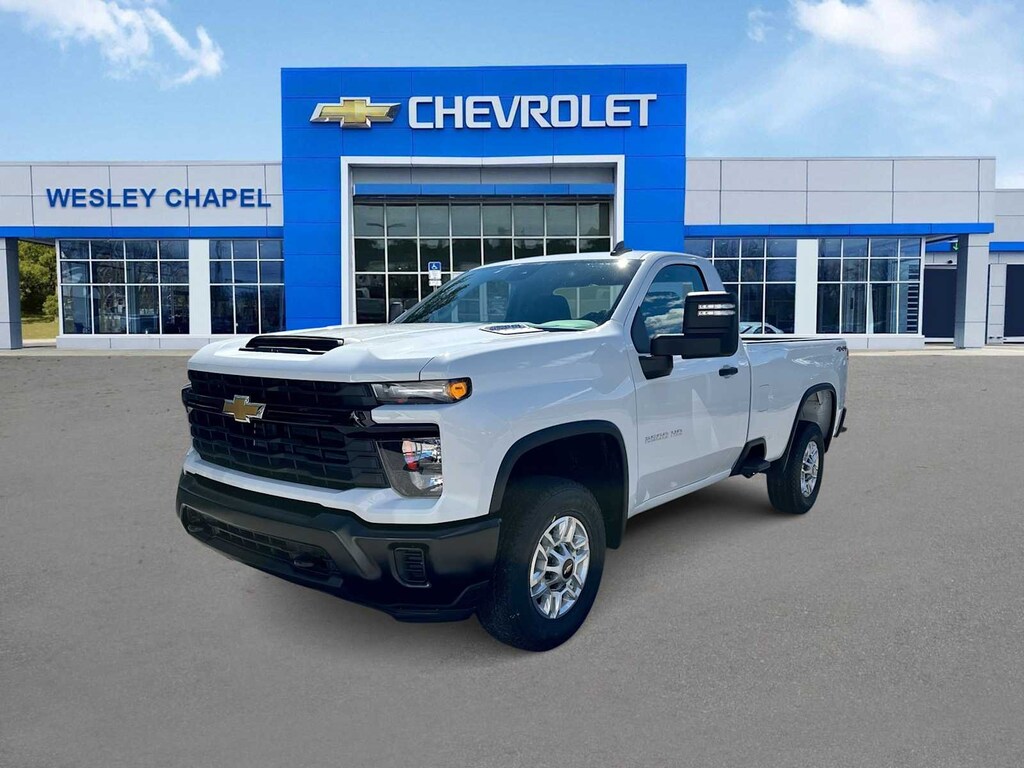 HOME OF THE LIFETIME WARRANTY! BUY WITH CONFIDENCE! WE LOVE TRADES! HASSLE FREE FINANCE PLANS FOR EVERYONE! PLEASE CALL TO ENSURE AVAILABLITY AS OUR INVENTORY CHANGES BY THE HOUR. Summit White 2026 Chevrolet Silverado 2500HD 4WD 10-Speed Automatic 6.6L V8 **TOUCHLESS DELIVERY - BUY FROM CONVENIENCE OF YOUR HOME**, HTTPS://WWW.DRIVEWAY.COM, HTTPS://WWW.CHEVYOFWESLEYCHAPEL.COM, 10-Speed Automatic, 4WD, Jet Black Vinyl, ABS brakes, Compass, Electronic Stability Control, Illuminated entry, Low tire pressure warning, Remote Keyless Entry, Remote keyless entry, Traction control, 170 Amp Alternator, 2 Speakers, 2-Speaker Audio System Feature, 2-Speed Electronic Shift Transfer Case, 3.5 Diagonal Monochromatic Display DIC, 3.73 Rear Axle Ratio, 4-Wheel Disc Brakes, 720 Cold-Cranking Amps Heavy-Duty Battery, Air Conditioning, AM/FM radio, Apple CarPlay/Android Auto, Auto High-beam Headlights, Black Front Bumper, Black Mirror Caps, Black Rear Bumper, Bluetoothî For Phone, Brake assist, Chevrolet Connected Access Capable, Delay-off headlights, Driver door bin, Dual front impact airbags, Dual front side impact airbags, Durabed Pickup Bed, Electronic Cruise Control w/Set & Resume Speed, Emergency communication system: OnStar, Front 40/20/40 Split-Bench Seats w/Lockable Storage, Front anti-roll bar, Front Center Armrest w/Storage, Front reading lights, Front wheel independent suspension, Fully automatic headlights, HD Rear Vision Camera, Locking Tailgate, Manual Tailgate Function w/No EZ Lift, Manual Tilt-Wheel Steering Column, Occupant sensing airbag, OnStar Services Capable, Outside temperature display, Overhead airbag, Overhead console, Panic alarm, Passenger door bin, Passenger vanity mirror, Power Door Locks, Power Front Windows w/Driver Express Up/Down, Power steering, Power windows, Premium audio system: Chevrolet Infotainment 3, Push Button Start, Radio: Chevrolet Infotainment 3 System, Rear step bumper, Rubberized-Vinyl Floor Covering, Solar Absorbing Tinted Glass, Speed control, Standard Tailgate, Suspension Package, Tachometer, Tilt steering wheel, Trip computer, Variably intermittent wipers, Vinyl Seat Trim, Voltmeter, Wheels: 17 Silver Painted Steel, Wi-Fi Hotspot Capable, Wireless Phone Projection, 10-Speed Automatic, 4WD, Jet Black Vinyl, ABS brakes, Compass, Electronic Stability Control, Illuminated entry, Low tire pressure warning, Remote Keyless Entry, Remote keyless entry, Traction control.