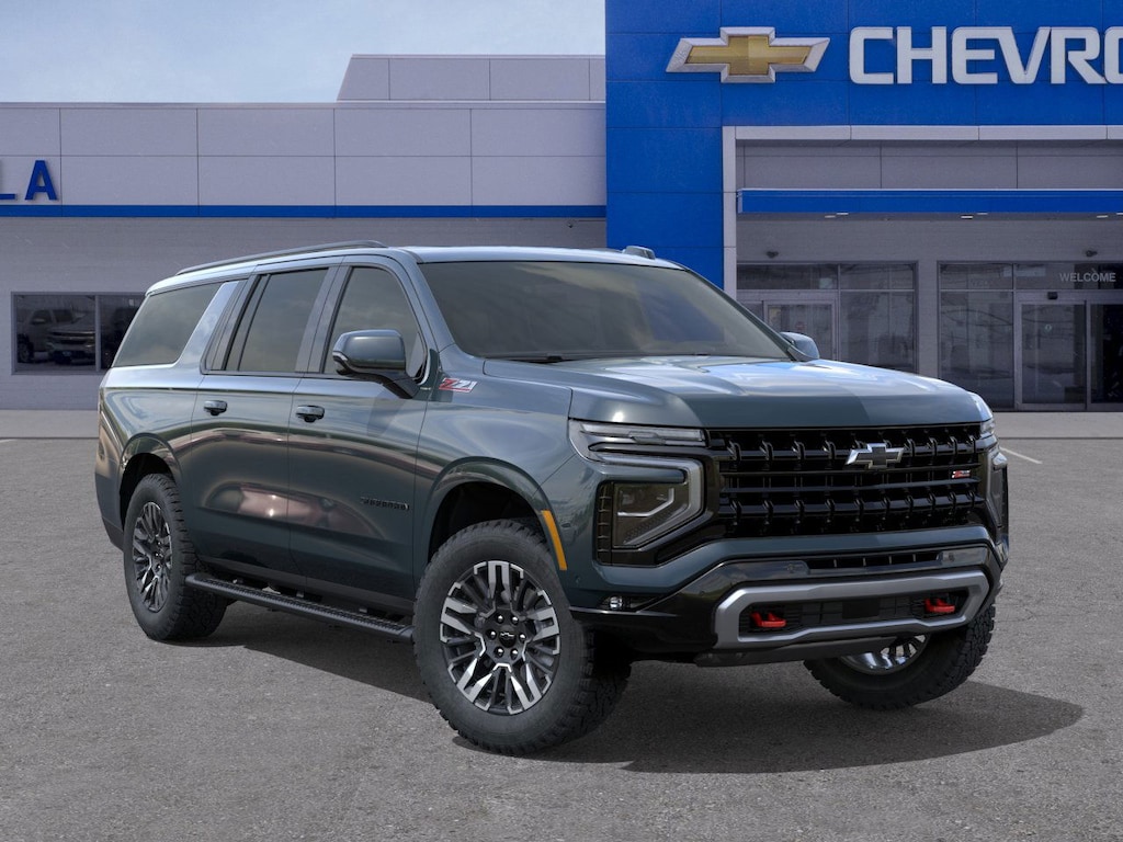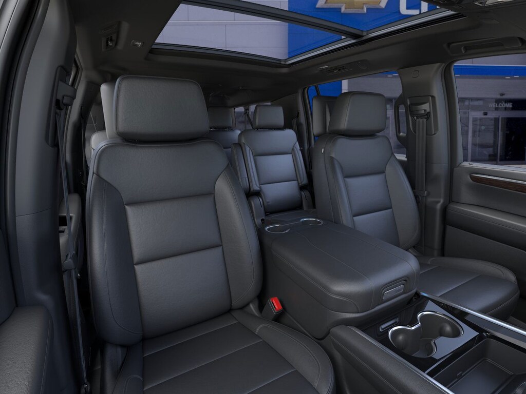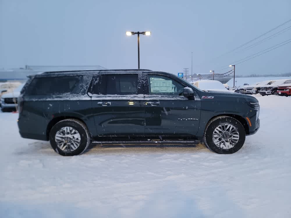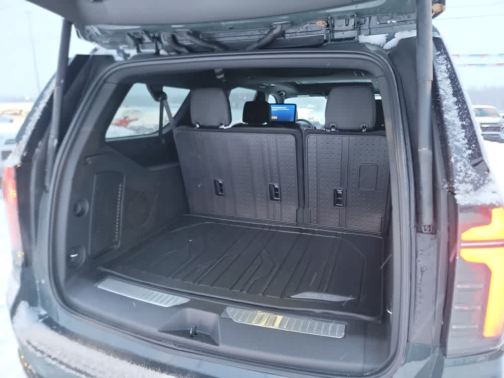 with Dynamic Fuel Management, Direct Injection and Variable Valve Timing, includes aluminum block construction (420 hp [313 kW] @ 5600 rpm, 460 lb-ft of torque [624 Nm] @ 4100 rpm), includes (A45) memory settings, (UQS) Bose 10-speaker Surround with CenterPoint, (DXR) outside heated power-adjustable, power-folding, body-color mirrors with driver-side auto-dimming and integrated turn signal indicators, (KI3) heated steering wheel, (KA6) second row outboard heated seats, (ATT) second row power 60/40 split-folding bench seats, (AS8) third row power 60/40 split-folding bench seats, (TGE) LED animated headlamps and (TAU) LED animated tail lamps, with express-open and close and power sunshade, Includes (DRZ) Rear Camera Mirror and (UV6) Head-Up Display.), SEATS, SECOND ROW BUCKET, POWER RELEASE, SUSPENSION, AIR RIDE ADAPTIVE, electronically controlled with overdrive, includes Traction Select System including tow/haul (STD), with Google built-in compatibility (select service plan required, terms and limitations apply), including navigation capability, connected apps, personalized profiles for each driver's settings, Natural Voice Recognition and Phone Integration (STD), includes dual rear seat-mounted 12.6" diagonal color-touch LCD HD screens, two Bluetooth® headphones with 2 HDMI ports on the back of the center console, includes (UKW) Blind Zone Steering Assist with Trailering, (PZ8) Hitch View and (UET) Smart Trailer Integration Indicator. Chevrolet Z71 with Cypress Gray exterior and Jet Black interior features a 8 Cylinder Engine with 420 HP at 5600 RPM*.