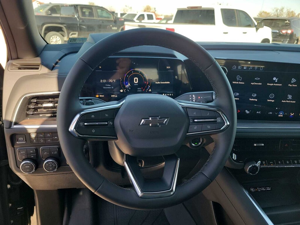 ENGINE, 6.2L ECOTEC3 V8 with Dynamic Fuel Management, Direct Injection and Variable Valve Timing, includes aluminum block construction (420 hp [313 kW] @ 5600 rpm, 460 lb-ft of torque [624 Nm] @ 4100 rpm), COMFORT PACKAGE includes (A45) memory settings, (UQS) Bose 10-speaker Surround with CenterPoint, (DXR) outside heated power-adjustable, power-folding, body-color mirrors with driver-side auto-dimming and integrated turn signal indicators, (KI3) heated steering wheel, (KA6) second row outboard heated seats, (ATT) second row power 60/40 split-folding bench seats, (AS8) third row power 60/40 split-folding bench seats, (TGE) LED animated headlamps and (TAU) LED animated tail lamps, SUNROOF, POWER PANORAMIC, DUAL-PANE, TILT-SLIDING with express-open and close and power sunshade, TECHNOLOGY PACKAGE Includes (DRZ) Rear Camera Mirror and (UV6) Head-Up Display.), LPO, PREMIUM LINER PROTECTION PACKAGE includes (AAK) 1st and 2nd row premium floor liners, LPO, (RIB) 3rd row all-weather floor liner, LPO and (CAV) all-weather cargo mat, LPO (dealer-installed), SEATS, SECOND ROW BUCKET, POWER RELEASE, SUSPENSION, AIR RIDE ADAPTIVE, TRANSMISSION, 10-SPEED AUTOMATIC electronically controlled with overdrive, includes Traction Select System including tow/haul (STD), AUDIO SYSTEM, 17.7 DIAGONAL ADVANCED COLOR LCD DISPLAY with Google built-in compatibility (select service plan required, terms and limitations apply), including navigation capability, connected apps, personalized profiles for each drivers settings, Natural Voice Recognition and Phone Integration (STD), ADVANCED TRAILERING PACKAGE includes (UKW) Blind Zone Steering Assist with Trailering, (PZ8) Hitch View and (UET) Smart Trailer Integration Indicator. Chevrolet Z71 with Black exterior and Jet Black interior features a 8 Cylinder Engine with 420 HP at 5600 RPM*.