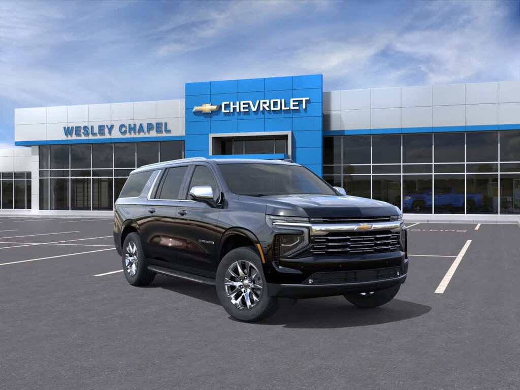Recent Arrival! HOME OF THE LIFETIME WARRANTY! BUY WITH CONFIDENCE! WE LOVE TRADES! HASSLE FREE FINANCE PLANS FOR EVERYONE! PLEASE CALL TO ENSURE AVAILABLITY AS OUR INVENTORY CHANGES BY THE HOUR. Black 2026 Chevrolet Suburban RWD 10-Speed Automatic with Overdrive EcoTec3 5.3L V8 **TOUCHLESS DELIVERY - BUY FROM CONVENIENCE OF YOUR HOME**, HTTPS://WWW.DRIVEWAY.COM, HTTPS://WWW.CHEVYOFWESLEYCHAPEL.COM, New Feature, 10 Speakers, 20 x 9 Polished Aluminum Wheels, 3.23 Rear Axle Ratio, 3rd Row 60/40 Power-Folding Split-Bench, 3rd Row All-Weather Floor Liners, 3rd row seats: split-bench, 4-Way Power Driver Lumbar Seat Adjuster, 4-Way Power Front Passenger Lumbar Seat Adjuster, 4-Wheel Disc Brakes, 8-Way Power Driver Seat Adjuster, 8-Way Power Front Passenger Seat Adjuster, ABS brakes, Adaptive suspension, Air Conditioning, All-Weather Cargo Mat, Alloy wheels, AM/FM radio: SiriusXM with 360L, Apple CarPlay/Android Auto, Auto High-beam Headlights, Auto-dimming door mirrors, Auto-Dimming Inside Rear-View Mirror, Auto-dimming Rear-View mirror, Auto-leveling suspension, Automatic temperature control, Bose 10-Speaker Surround with CenterPoint, Brake assist, Bright Front and Rear Door Sill Plates, Bumpers: body-color, Chrome Door Handles with Body-Color Strip, Chrome Mirror Caps, Compass, Delay-off headlights, Driver door bin, Driver vanity mirror, Dual Exhaust System, Dual front impact airbags, Dual front side impact airbags, Electronic Stability Control, Emergency communication system: OnStar Services capable, Exterior Parking Camera Rear, First and Second Rows Premium Floor Liners, Four wheel independent suspension, Front anti-roll bar, Front Bucket Seats, Front Center Armrest, Front dual zone A/C, Front fog lights, Front LED Fog Lamps, Front reading lights, Fully automatic headlights, Garage door transmitter, Heated 2nd Row Outboard Seats, Heated door mirrors, Heated Driver and Front Passenger Seats, Heated front seats, Heated Power-Adjustable Outside Mirrors, Heated rear seats, Heated Steering Wheel, Heated steering wheel, Illuminated entry, Interior Camera, LED Headlamps with LED Daytime Running Lamps, LED Tail Lamps, Low tire pressure warning, Magnetic Ride Control Suspension, Memory seat, Memory Settings, Navigation system: Google built-in compatibility (select service plan required, terms and limitations apply), Occupant sensing airbag, Outside temperature display, Overhead airbag, Overhead console, Panic alarm, Passenger door bin, Passenger vanity mirror, Perforated Heated and Ventilated Seats, Perforated Leather Seating Surfaces, Power door mirrors, Power driver seat, Power Liftgate, Power passenger seat, Power Release 2nd Row Bucket Seats, Power steering, Power Tilt and Telescopic Steering Column, Power windows, Power-Sliding Center Floor Console, Premium Liner Protection Package, Radio data system, Radio: 17.7 Diagonal Advanced Color LCD Display, Rain sensing wipers, Rear air conditioning, Rear anti-roll bar, Rear Power Liftgate, Rear reading lights, Rear window defroster, Rear window wiper, Remote keyless entry, Security system, SiriusXM with 360L Trial Subscription, Speed control, Speed-sensing steering, Split folding rear seat, Spoiler, Steering wheel memory, Steering wheel mounted audio controls, Tachometer, Telescoping steering wheel, Tilt steering wheel, Traction control, Trip computer, Turn signal indicator mirrors, Universal Home Remote, Variably intermittent wipers, Ventilated front seats, Voltmeter, Wireless Apple CarPlay/Wireless Android Auto, Wireless Phone Charging.