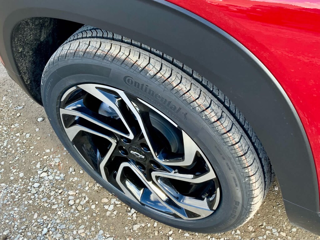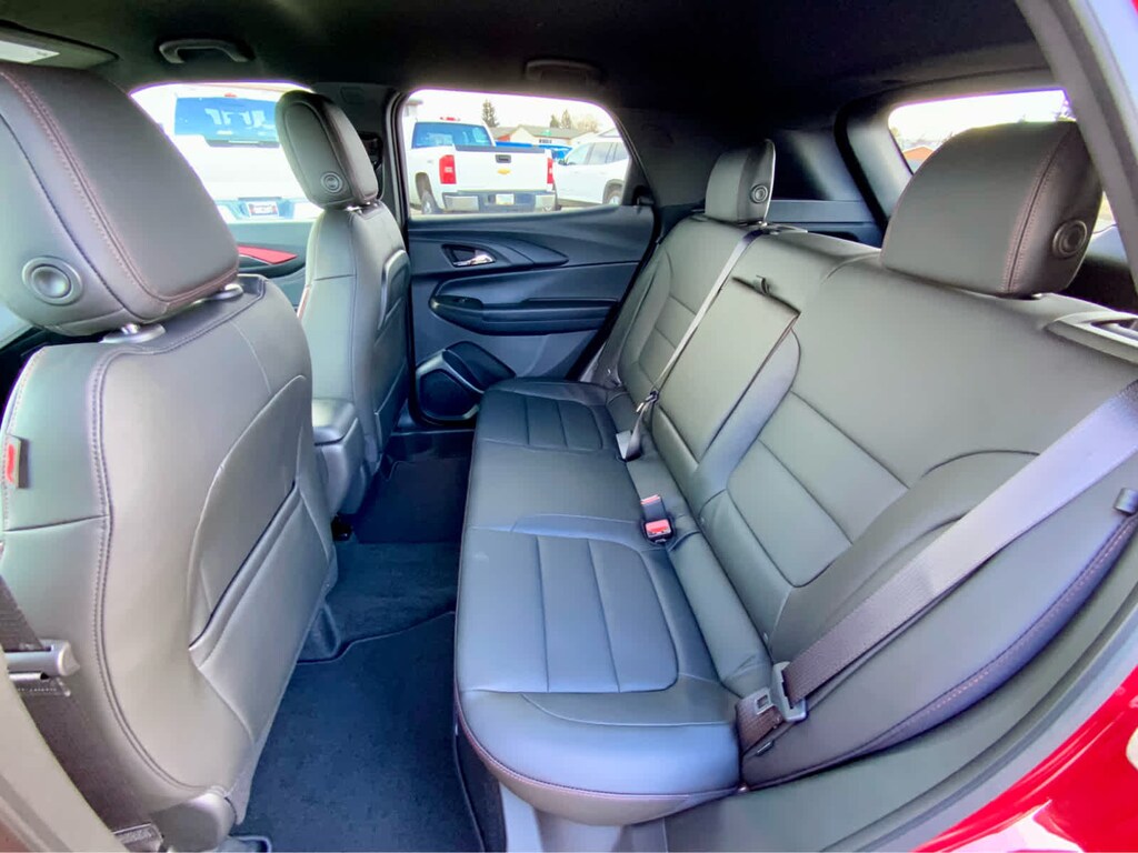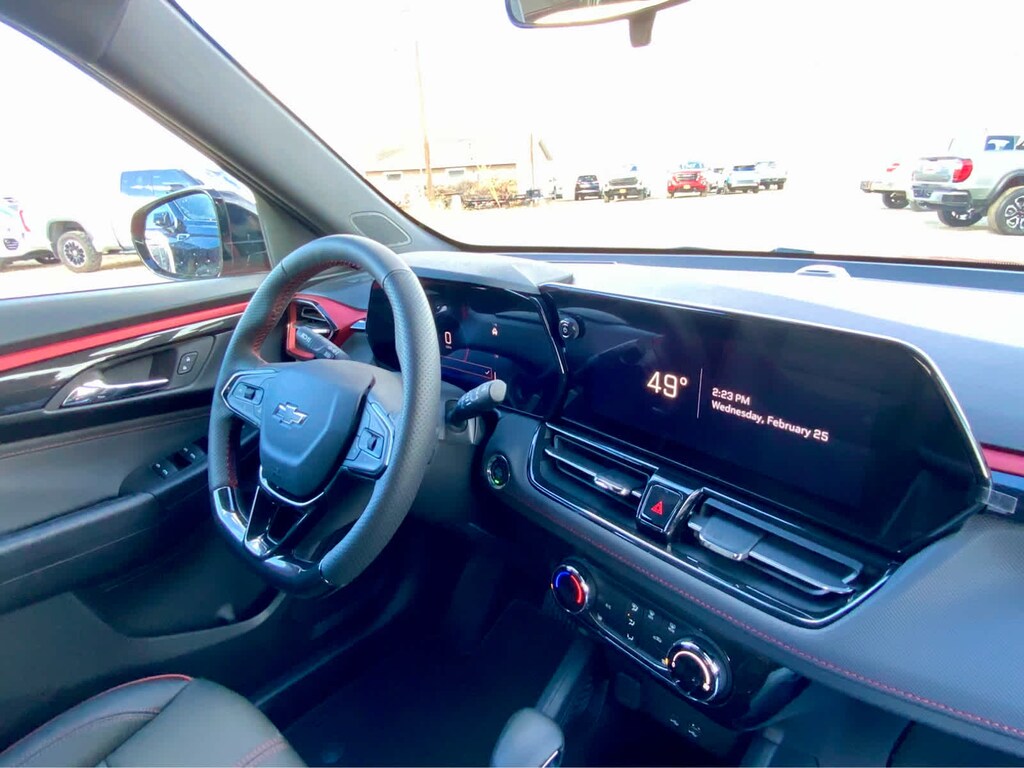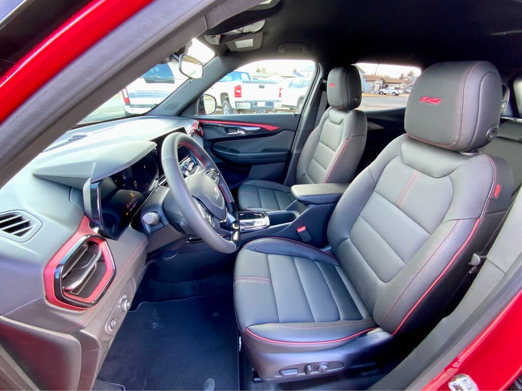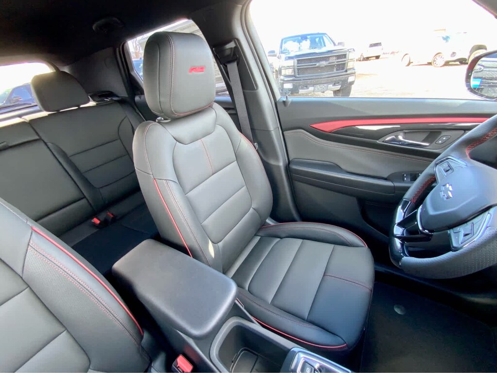 DRIVER CONFIDENCE PACKAGE includes (UKC) Lane Change Alert with Side Blind Zone Alert, (UFG) Rear Cross Traffic Alert and (UD7) Rear Park Assist, AUDIO SYSTEM, 11" DIAGONAL HD COLOR TOUCHSCREEN, AM/FM STEREO. Additional features for compatible phones include: Bluetooth® audio streaming for 2 active devices, voice command pass-through to phone, wireless Apple CarPlay® and wireless Android Auto® capable (STD), ENGINE, ECOTEC 1.3L I3 TURBO DOHC SIDI WITH VARIABLE VALVE TIMING (VVT) (155 hp [115 kW] @ 5600 rpm, 174 lb-ft torque [236 N-m] @ 1600 rpm) (STD), TRANSMISSION, 9-SPEED AUTOMATIC (STD). Chevrolet RS with Apex Red exterior and Jet Black with Red accents interior features a 3 Cylinder Engine with 155 HP at 5600 RPM*.