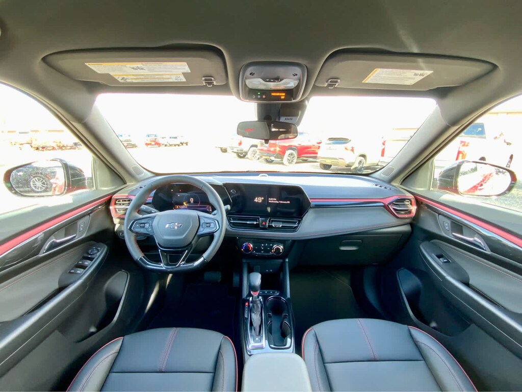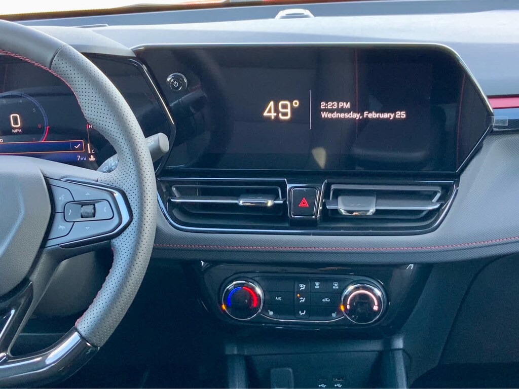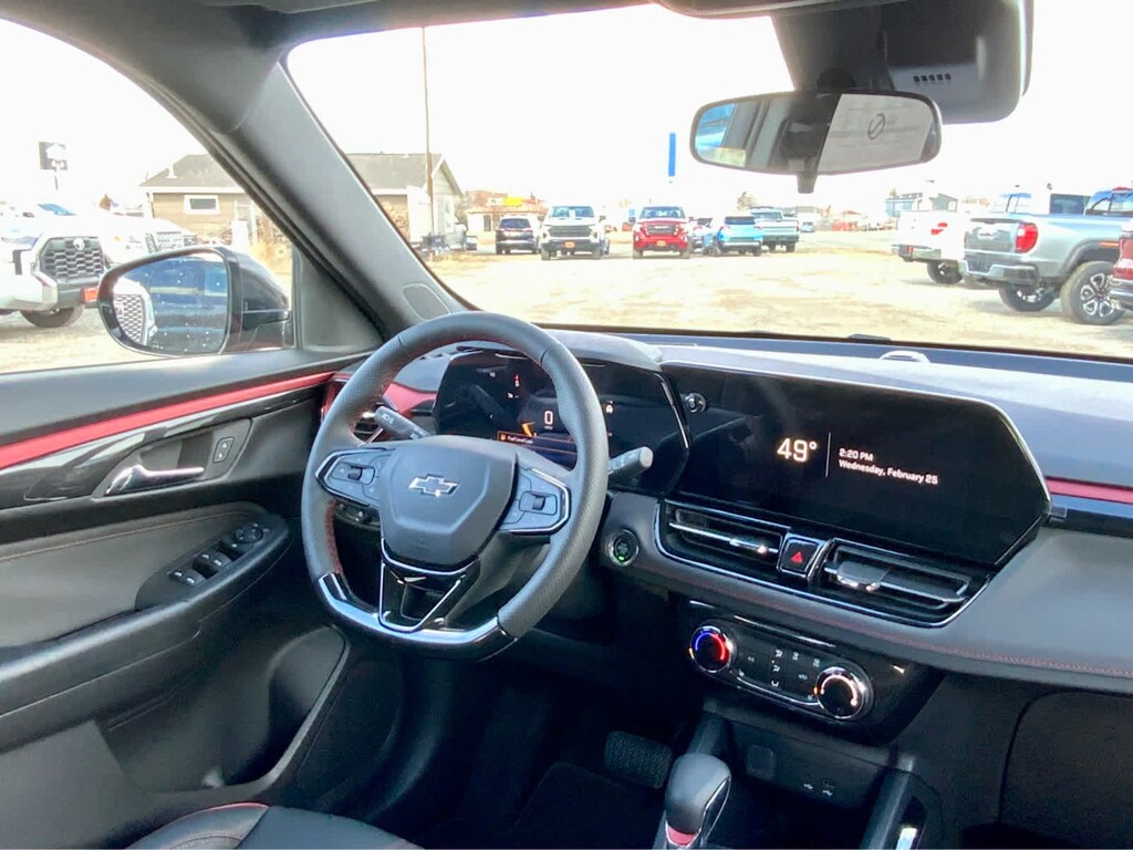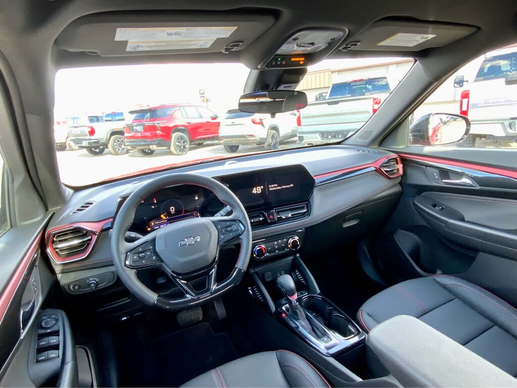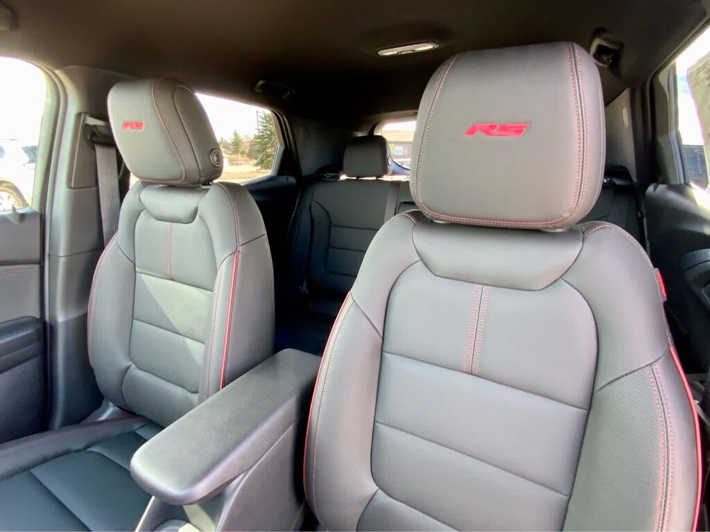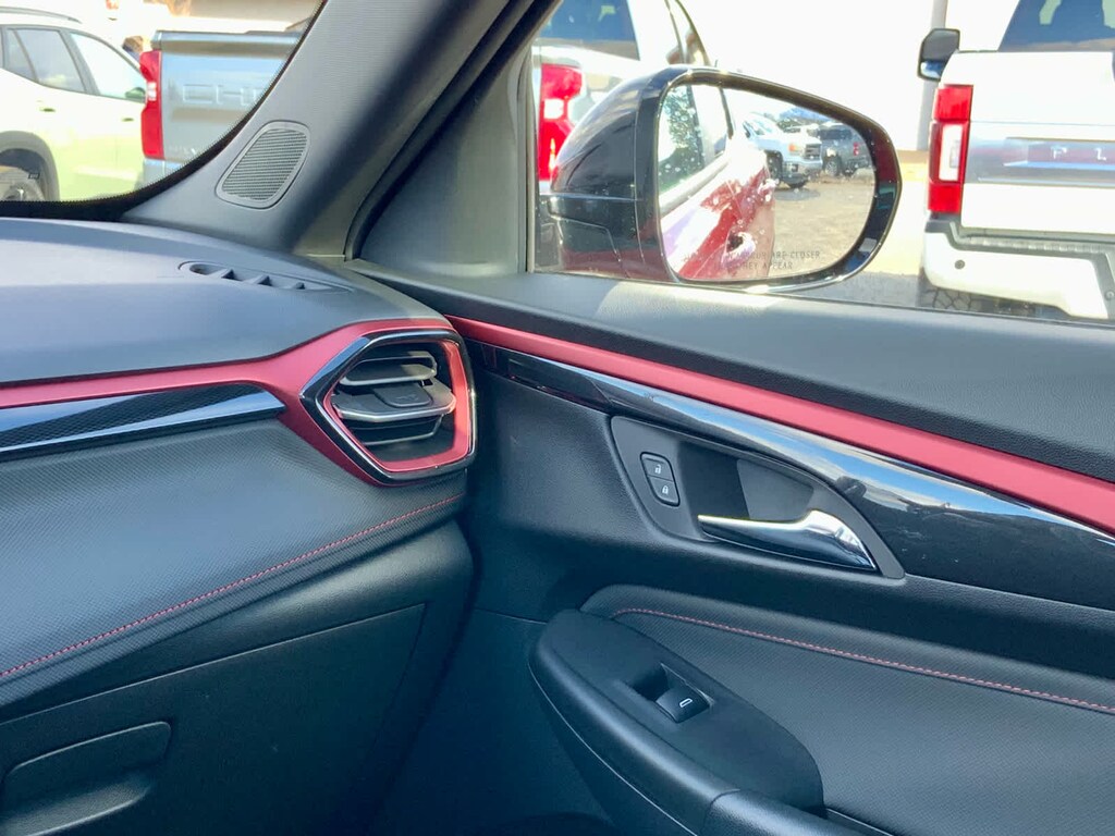 DRIVER CONFIDENCE PACKAGE includes (UKC) Lane Change Alert with Side Blind Zone Alert, (UFG) Rear Cross Traffic Alert and (UD7) Rear Park Assist, AUDIO SYSTEM, 11" DIAGONAL HD COLOR TOUCHSCREEN, AM/FM STEREO. Additional features for compatible phones include: Bluetooth® audio streaming for 2 active devices, voice command pass-through to phone, wireless Apple CarPlay® and wireless Android Auto® capable (STD), ENGINE, ECOTEC 1.3L I3 TURBO DOHC SIDI WITH VARIABLE VALVE TIMING (VVT) (155 hp [115 kW] @ 5600 rpm, 174 lb-ft torque [236 N-m] @ 1600 rpm) (STD), TRANSMISSION, 9-SPEED AUTOMATIC (STD). Chevrolet RS with Apex Red exterior and Jet Black with Red accents interior features a 3 Cylinder Engine with 155 HP at 5600 RPM*.