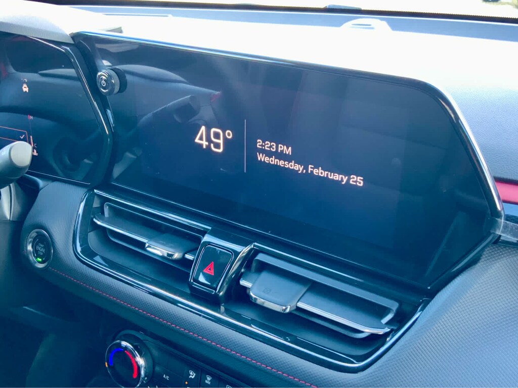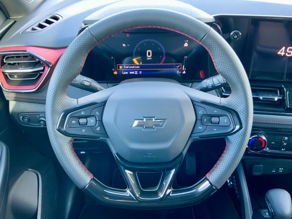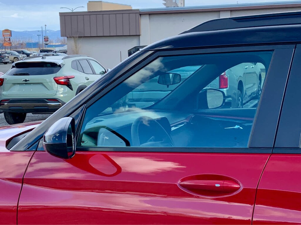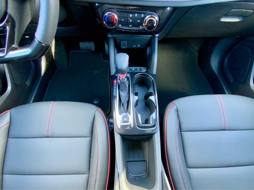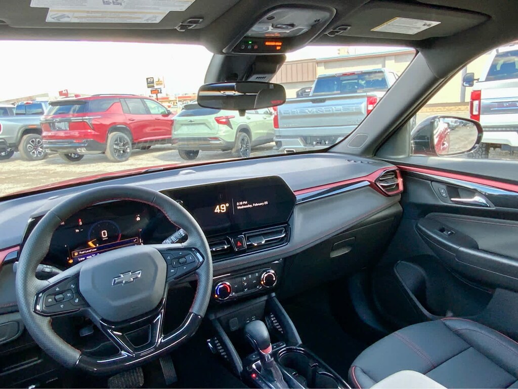 DRIVER CONFIDENCE PACKAGE includes (UKC) Lane Change Alert with Side Blind Zone Alert, (UFG) Rear Cross Traffic Alert and (UD7) Rear Park Assist, AUDIO SYSTEM, 11" DIAGONAL HD COLOR TOUCHSCREEN, AM/FM STEREO. Additional features for compatible phones include: Bluetooth® audio streaming for 2 active devices, voice command pass-through to phone, wireless Apple CarPlay® and wireless Android Auto® capable (STD), ENGINE, ECOTEC 1.3L I3 TURBO DOHC SIDI WITH VARIABLE VALVE TIMING (VVT) (155 hp [115 kW] @ 5600 rpm, 174 lb-ft torque [236 N-m] @ 1600 rpm) (STD), TRANSMISSION, 9-SPEED AUTOMATIC (STD). Chevrolet RS with Apex Red exterior and Jet Black with Red accents interior features a 3 Cylinder Engine with 155 HP at 5600 RPM*.