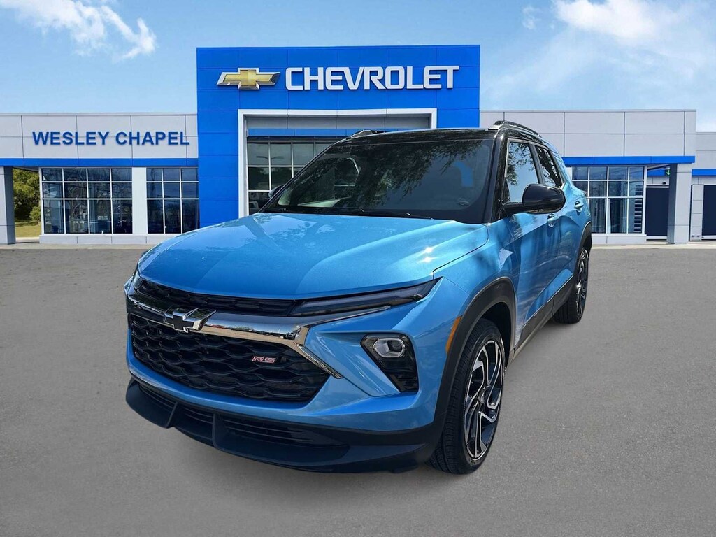 HOME OF THE LIFETIME WARRANTY! BUY WITH CONFIDENCE! WE LOVE TRADES! HASSLE FREE FINANCE PLANS FOR EVERYONE! PLEASE CALL TO ENSURE AVAILABLITY AS OUR INVENTORY CHANGES BY THE HOUR. Marina Blue Metallic 2026 Chevrolet TrailBlazer FWD CVT 1.3L Ecotec Turbo DOHC SIDI w/VVT **TOUCHLESS DELIVERY - BUY FROM CONVENIENCE OF YOUR HOME**, HTTPS://WWW.DRIVEWAY.COM, HTTPS://WWW.CHEVYOFWESLEYCHAPEL.COM, 1 Type-A & 1 Type-C USB Charging-Only Ports, 1 Type-A & 1 Type-C USB Ports, 120-Volt Power Outlet, 2-Way Power Driver Lumbar Seat Adjuster, 4-Way Manual Front Passenger Seat Adjuster, 4-Wheel Disc Brakes, 5.45 Final Drive Axle Ratio, 6 Speakers, 8-Way Power Driver Seat Adjuster, ABS brakes, Air Conditioning, Alloy wheels, AM/FM radio: SiriusXM, Auto High-beam Headlights, Brake assist, Bumpers: body-color, Cabin Humidity Sensor, Compass, Convenience Package, Delay-off headlights, Dr & Fr Passenger Illuminated Vanity Mirrors, Driver Confidence Package, Driver door bin, Driver vanity mirror, Dual front impact airbags, Dual front side impact airbags, Electronic Stability Control, Emergency communication system: OnStar and Chevrolet connected services capable, Enhanced Performance 6-Speaker Audio System, Evotex Seat Trim, Exterior Parking Camera Rear, Flat-Folding Front Passenger Seatback, Front & Rear All-Weather Floor Liners (LPO), Front anti-roll bar, Front Bucket Seats, Front Center Armrest, Front reading lights, Front wheel independent suspension, Fully automatic headlights, Hands Free Power Programmable Liftgate, Heated door mirrors, Heated Driver & Front Passenger Seats, Heated front seats, Heated steering wheel, Illuminated entry, Inside Rear-View Auto-Dimming Mirror, Knee airbag, Lane Change Alert w/Side Blind Zone Alert, Low tire pressure warning, Occupant sensing airbag, Overhead airbag, Overhead console, Panic alarm, Passenger door bin, Passenger vanity mirror, Power door mirrors, Power driver seat, Power steering, Power windows, Radio data system, Radio: AM/FM Stereo Audio System, Rear Cross Traffic Alert, Rear Park Assist, Rear seat center armrest, Rear side impact airbag, Rear window defroster, Rear window wiper, Remote keyless entry, Ride & Handling Suspension, Security system, Single-Zone Automatic Climate Control, SiriusXM Trial Subscription, Speed control, Split folding rear seat, Spoiler, Steering wheel mounted audio controls, Tachometer, Telescoping steering wheel, Tilt steering wheel, Traction control, Trip computer, Variably intermittent wipers, Wheels: 19 High Gloss Black Machined Aluminum, Wireless Apple CarPlay/Android Auto, Wireless Charging.