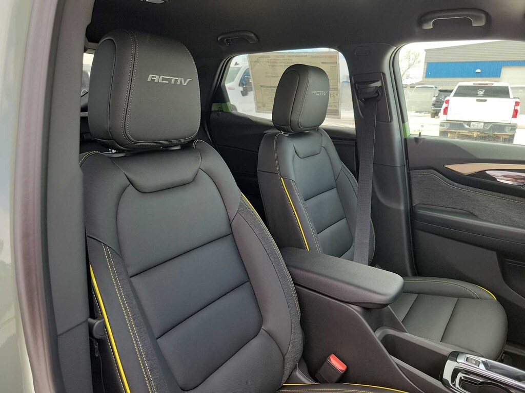 DRIVER CONFIDENCE PACKAGE includes (UKC) Lane Change Alert with Side Blind Zone Alert, (UFG) Rear Cross Traffic Alert and (UD7) Rear Park Assist, AUDIO SYSTEM, 11 DIAGONAL HD COLOR TOUCHSCREEN, AM/FM STEREO. Additional features for compatible phones include: Bluetooth® audio streaming for 2 active devices, voice command pass-through to phone, wireless Apple CarPlay® and wireless Android Auto® capable (STD), ENGINE, ECOTEC 1.3L I3 TURBO DOHC SIDI WITH VARIABLE VALVE TIMING (VVT) (155 hp [115 kW] @ 5600 rpm, 174 lb-ft torque [236 N-m] @ 1600 rpm) (STD), TRANSMISSION, CONTINUOUSLY VARIABLE (CVT) (STD). Chevrolet ACTIV with Cacti Green exterior and Jet Black with Yellow stitching interior features a 3 Cylinder Engine with 155 HP at 5600 RPM*.