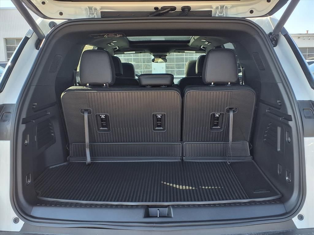 Roomy and relaxing, our LT cabin is equipped for adventure with heated premium cloth front seats with eight-way power for the driver, folding second/third rows, a heated-wrapped steering wheel, tri-zone automatic climate control, keyless access/ignition, and remote start. The interior shows its intelligence with a 17-inch touchscreen, an 11-inch driver display, WiFi compatibility, Google Built-in with navigation, Bluetooth, and a six-speaker sound system. There's ample room for cargo, too!