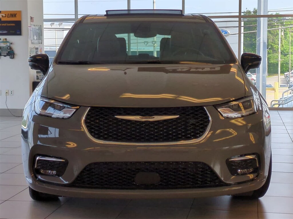 Pacifica Select is nicely equipped with Quick Order Package 27L, Safety Sphere (360 Surround View Camera System, Parallel & Perpendicular Park Assist w/Stop, and ParkSense Front/Rear Park Assist w/Stop), 10.1 Touchscreen Display, 17 x 7.0 Aluminum Wheels, 3.25 Axle Ratio, 3rd row seats: split-bench, 4-Wheel Disc Brakes, 4G LTE Wi-Fi Hot Spot, 6 Speakers, ABS brakes, Air Conditioning, Alloy wheels, AM/FM radio: SiriusXM, Apple CarPlay, Apple CarPlay/Android Auto, Auto-dimming Rear-View mirror, Automatic temperature control, Black Seats, Brake assist, Bumpers: body-color, Caprice Leatherette Bucket Seats, Compass, Delay-off headlights, Disassociated Touchscreen Display, Driver door bin, Driver vanity mirror, Drivers Seat Mounted Armrest, Dual front impact airbags, Dual front side impact airbags, Electronic Stability Control, Emergency communication system: Chrysler Connect, For Details, Visit DriveUconnect.com, Four wheel independent suspension, Front anti-roll bar, Front Bucket Seats, Front dual zone A/C, Front Fascia Air Deflectors, Front fog lights, Front reading lights, Fully automatic headlights, Garage door transmitter, Google Android Auto, GPS Antenna Input, Heated door mirrors, Heated front seats, Heated steering wheel, Illuminated entry, Integrated Active Noise Cancellation, Integrated Center Stack Radio, Knee airbag, Low tire pressure warning, Memory seat, Occupant sensing airbag, Outside temperature display, Overhead airbag, Overhead console, Panic alarm, ParkView Rear Back-Up Camera, Passenger door bin, Passenger seat mounted armrest, Passenger vanity mirror, Power door mirrors, Power driver seat, Power Front/Fixed Rear Full Sunroof, Power Liftgate, Power Open/Close Shade, Power steering, Power windows, Radio data system, Radio: Uconnect 5 w/10.1 Display, Rain sensing wipers, Rear air conditioning, Rear reading lights, Rear window defroster, Rear window wiper, Reclining 3rd row seat, Remote keyless entry, Security system, SiriusXM Guardian - Included Trial (B), Speed control, Split folding rear seat, Spoiler, Steering wheel mounted audio controls, Tachometer, Telescoping steering wheel, Tilt steering wheel, Touring Suspension, Traction control, Trip computer, Turn signal indicator mirrors, USB Host Flip, Variably intermittent wipers, and VoltmeteR.