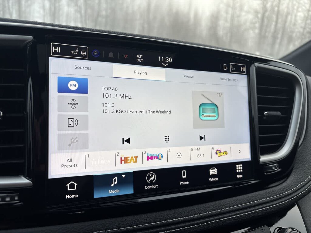 POWER FRONT/FIXED REAR FULL SUNROOF Power Open/Close Shade, SAFETY SPHERE ParkSense Front/Rear Park Assist w/Stop, 360 Surround View Camera System, TRANSMISSION: 9-SPEED 948TE AUTOMATIC (STD), ENGINE: 3.6L V6 24V VVT UPG I W/ESS (STD). Chrysler Select with Bright White Clearcoat exterior and Black interior features a V6 Cylinder Engine with 287 HP at 6400 RPM*.