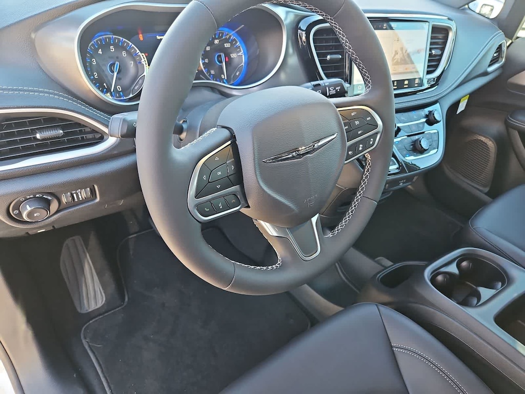 Engineered for comfortable versatility, our Select cabin is at your service with heated leatherette front seats, eight-way power for the driver, Stow n Go second-third rows, a heated TechnoLeather steering wheel, tri-zone automatic climate control, Super Console storage, remote start, and keyless access/ignition. A 10.1-inch touchscreen and 7-inch driver display anchor the infotainment system to support wireless Apple CarPlay, Android Auto, WiFi compatibility, Bluetooth, voice command, and a six-speaker sound system. Its a superior interior for families on the go!