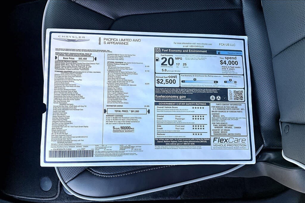 UCONNECT THEATER FAMILY GROUP Video USB Port, Blu-Ray/DVD Player/USB Port, Hands Free Sliding Doors, 19 harman/kardon® Speakers w/Subwoofer, High Definition Multimedia Interface, Stow N Vac Integrated Vacuum, 3-Channel Video Remote Control, 2nd & 3rd Row Window Shades, Seatback Video Screens, 115V Auxiliary Power Outlet, 760 Watt Amplifier, FamCAM Interior Camera, Amazon Fire TV Built-In, S APPEARANCE PACKAGE Black Day Light Opening Moldings, Premium Fascia Upper/Lower Grille w/Black Surround, Tires: 245/50R20 BSW AS Self-Sealing, Black Stow N Place Roof Rack, Premium Rear Fascia Black, Wheels: 20 x 7.5 S-Model Aluminum Design 1, Anodized Ink Badging, S Badge, SAFETY SPHERE ParkSense Front/Rear Park Assist w/Stop, 360 Surround View Camera System, TRANSMISSION: 9-SPEED 948TE AUTOMATIC (STD), ENGINE: 3.6L V6 24V VVT UPG I W/ESS (STD). Chrysler Limited with Diamond Black Crystal Pearlcoat exterior and Black interior features a V6 Cylinder Engine with 287 HP at 6400 RPM*.