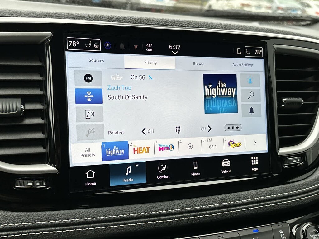 100TH ANNIVERSARY BUZZ MODEL PACKAGE 100th Anniversary Buzz Model Graphic, Black Day Light Opening Moldings, Wheels: 20 x 7.5 Luster Gray Aluminum, Safety Sphere, ParkSense Front/Rear Park Assist w/Stop, 360 Surround View Camera System, Tires: 245/50R20 BSW AS Self-Sealing, Granite Crystal Exterior Badging, Premium Rear Fascia Granite Crystal, Granite Crystal Exterior Accents, Premium Fascia-Upper/Lower Grilles/Granite Crystal, POWER FRONT/FIXED REAR FULL SUNROOF Power Open/Close Shade, 8 PASSENGER SEATING, TRANSMISSION: 9-SPEED 948TE AUTOMATIC (STD), ENGINE: 3.6L V6 24V VVT UPG I W/ESS (STD). Chrysler Select with Bright White Clearcoat exterior and Black interior features a V6 Cylinder Engine with 287 HP at 6400 RPM*.