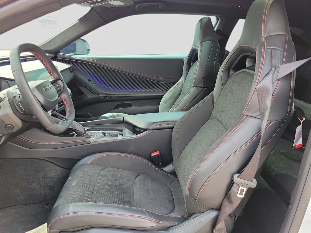 PLUS GROUP Black Color Multi-Function Mirrors, Surround View Camera System, Front Cubby Bin w/Light, Rain Sensitive Windshield Wipers, Frunk, Premium Door Trim Panel, Illuminated Door Pull Handles, Map-In-Cluster Display, Glove Box Lamp, Windshield Wiper De-Icer, Premium LED Low-High Reflective Headlamps, Power Windows Global Down w/Key Fob, LED Map Pockets, Exterior Mirrors Logo Lamps, Power Tilt/Telescope Steering Column, Ambient Light Color Control, Wireless Charging Pad, Premium Instrument Panel, Automatic High-Beam Headlamp Control, Exterior Mirrors w/Memory, Power Hatch, Premium Interior Accents, LED Footwell Lighting, Radio, Driver Seat, Mirrors & Steering Column Memory, TRACK PACK Radio & Driver Seat Memory, Black 1-Piece Performance Spoiler, Brake Calipers - Red, Drive Experience Recorder Prep, Adaptive Damping, Widebody Competition Suspension, Ultra High Performance Brakes, CARBON & SUEDE PACKAGE Exterior Mirrors Logo Lamps, Suede Headliner, Wheels: 20 x 11 Fr/20 x 11.5 Rr Black Aluminum, Carbon Fiber Exterior Mirrors, Carbon Fiber Multi-Function Mirrors, Door Panel w/Carbon Fiber Insert, Instrument Panel w/Carbon Fiber & Suede Wrap, Dark Exterior Badging, Radio & Driver Seat Memory, Exterior Mirrors w/Memory, Carbon Fiber Interior Accents, SUN & SOUND PACKAGE 18 High Performance Alpine Speakers w/Subwoofer, Special Paint Procedure, Full Glass Roof, TRANSMISSION: FRONT/REAR OFFSET 1 SPEED GEARBOX (STD), ENGINE: 400V G2500 FRONT/REAR ELECTRIC DRIVE MOTORS (STD). Dodge Scat Pack with White Knuckle exterior and Black interior features a Electric Motor.