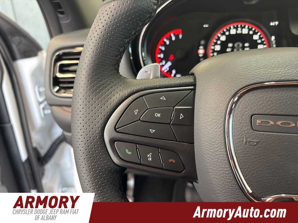 Durango GT is nicely equipped with Blacktop Package (Black Roof Rails, Gloss Black Badges, GT Gloss Black Badging, Integrated Roof Rail Crossbars, Satin Black Dodge Tail Lamp Badge, and Wheels: 20 x 8 Black Noise Aluminum), Quick Order Package 2BD GT, 3.45 Rear Axle Ratio, 3rd row seats: split-bench, 4-Wheel Disc Brakes, 6 Speakers, ABS brakes, Air Conditioning, Alloy wheels, AM/FM radio: SiriusXM w/360L, Apple CarPlay/Android Auto, Auto-dimming Rear-View mirror, Automatic temperature control, Brake assist, Bumpers: body-color, Compass, Delay-off headlights, Driver door bin, Driver vanity mirror, Dual front impact airbags, Dual front side impact airbags, Electronic Stability Control, Emergency communication system: Dodge Connect, Four wheel independent suspension, Front anti-roll bar, Front Bucket Seats, Front Center Armrest w/Storage, Front dual zone A/C, Front License Plate Bracket, Front reading lights, Fully automatic headlights, Garage door transmitter, Gloss Black Exterior Mirrors, Heated door mirrors, Heated front seats, Heated steering wheel, Illuminated entry, Knee airbag, Leather steering wheel, Low tire pressure warning, MyFlexCare Service Plan, Navigation System, Occupant sensing airbag, Outside temperature display, Overhead airbag, Overhead console, Panic alarm, ParkView Rear Back-Up Camera, Passenger door bin, Passenger vanity mirror, Power door mirrors, Power driver seat, Power Liftgate, Power steering, Power windows, Radio data system, Rear air conditioning, Rear anti-roll bar, Rear reading lights, Rear seat center armrest, Rear window defroster, Rear window wiper, Red Accent Stitching, Remote keyless entry, Speed control, Speed-sensing steering, Speed-Sensitive Wipers, Split folding rear seat, Spoiler, Sport steering wheel, Steering wheel mounted audio controls, Tachometer, Telescoping steering wheel, Tilt steering wheel, Traction control, Trip computer, Variably intermittent wipers, Voltmeter, and Wheels: 20 x 8 Fine Silver. Price includes: $1000 - 2026 National Engine Retail Bonus Cash . Exp. 03/02/2026