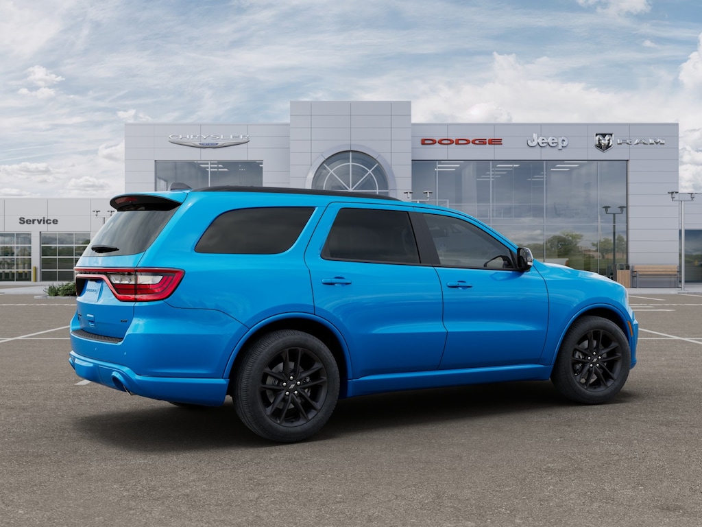 Nothing says impressive like our 2026 Dodge Durango GT Plus AWD with the Blacktop Package that gets family trips off to a great start in B5 Blue! Motivated by a 3.6 Liter Pentastar V6 supplying 295hp to a paddle-shifted 8 Speed Automatic transmission with a dedicated Sport mode. A rear load-leveling suspension helps you handle lifes challenges as this All Wheel Drive SUV achieves nearly 24mpg on the highway with a dominating Dodge design. Exterior highlights include a power sunroof, LED lighting, a performance hood with built-in heat extractors, 20-inch Black Noise aluminum wheels, roof rails/crossbars, and a power liftgate.