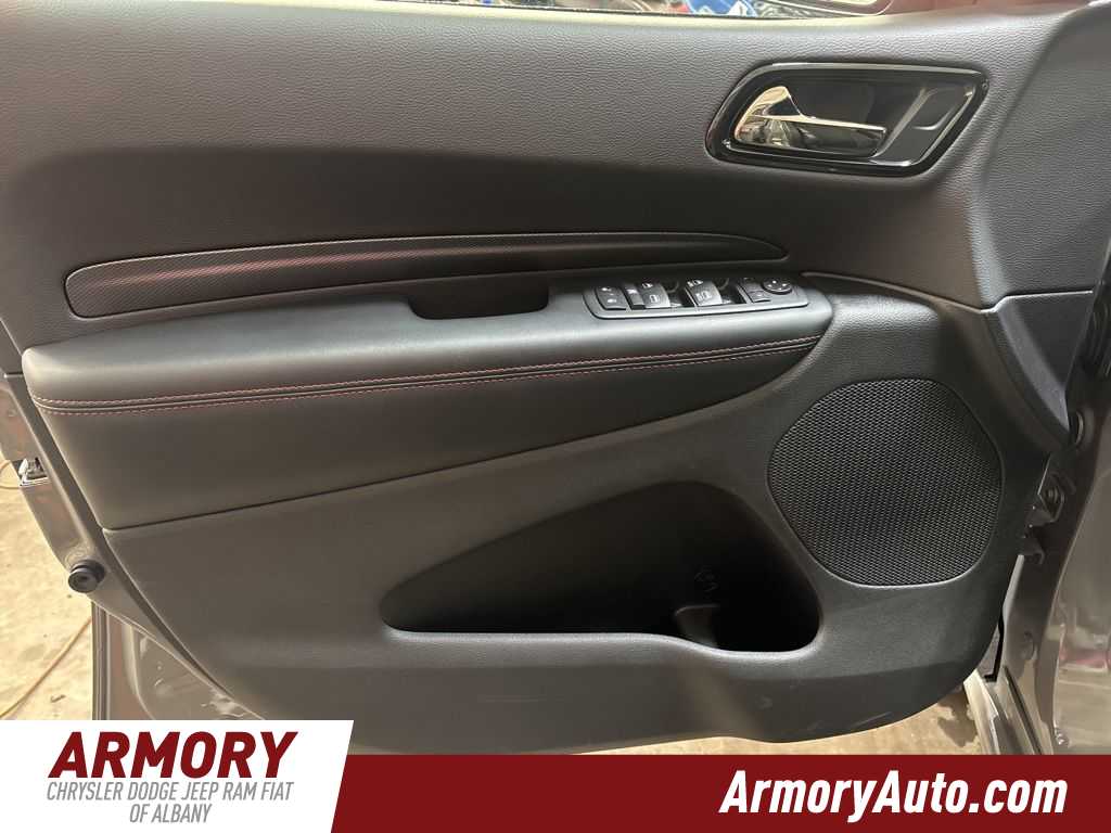 Durango GT HEMI V8 is nicely equipped with Blacktop Package (Black Roof Rails, Gloss Black Badges, Integrated Roof Rail Crossbars, and Satin Black Dodge Tail Lamp Badge), Quick Order Package 22S GT, 3.09 Rear Axle Ratio, 3rd row seats: split-bench, 4-Wheel Disc Brakes, 9 Speakers, ABS brakes, Air Conditioning, Alloy wheels, AM/FM radio: SiriusXM w/360L, Apple CarPlay/Android Auto, Auto-dimming Rear-View mirror, Auto-leveling suspension, Automatic temperature control, Brake assist, Bumpers: body-color, Cloth Bucket Seats with Shift Insert, Compass, Delay-off headlights, Driver door bin, Driver vanity mirror, Dual front impact airbags, Dual front side impact airbags, Electronic Stability Control, Emergency communication system: Dodge Connect, Exterior Mirrors with Heating Element, Four wheel independent suspension, Front anti-roll bar, Front Bucket Seats, Front Center Armrest w/Storage, Front dual zone A/C, Front License Plate Bracket, Front reading lights, Fully automatic headlights, Garage door transmitter, Gloss Black Exterior Mirrors, Heated door mirrors, Heated front seats, Heated steering wheel, Illuminated entry, Knee airbag, Leather steering wheel, Low tire pressure warning, Navigation System, Occupant sensing airbag, Outside temperature display, Overhead airbag, Overhead console, Panic alarm, ParkView Rear Back-Up Camera, Passenger door bin, Passenger vanity mirror, Power door mirrors, Power driver seat, Power Liftgate, Power steering, Power windows, Radio data system, Radio: Uconnect 5 Nav with 10.1 Display, Rain sensing wipers, Rear air conditioning, Rear anti-roll bar, Rear Load Leveling Suspension, Rear reading lights, Rear seat center armrest, Rear window defroster, Rear window wiper, Red Accent Stitching, Remote keyless entry, Security system, Speed control, Speed-sensing steering, Speed-Sensitive Wipers, Split folding rear seat, Spoiler, Sport steering wheel, Steering wheel mounted audio controls, Tachometer, Telescoping steering wheel, Tilt steering wheel, Traction control, Trip computer, Variably intermittent wipers, Voltmeter, Wheels: 20 x 8 Black Noise Split 5-Spoke, and Wheels: 20 x 8 Satin Carbon Split 5-Spoke.