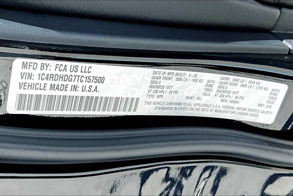 DB Black Crystal Clearcoat 2026 Dodge Durango GT RWD 8-Speed Automatic 3.6L V6 24V VVT FRESH OIL CHANGE, 18 x 8 Painted Aluminum Wheels, 3.27 Rear Axle Ratio, 3rd row seats: split-bench, 4-Wheel Disc Brakes, 6 Speakers, ABS brakes, Air Conditioning, Alloy wheels, AM/FM radio: SiriusXM w/360L, Apple CarPlay/Android Auto, Auto-dimming Rear-View mirror, Auto-leveling suspension, Automatic temperature control, Black Roof Rails, Blacktop Package, Brake assist, Bumpers: body-color, Cloth Bucket Seats with Shift Insert, Compass, Delay-off headlights, Driver door bin, Driver vanity mirror, Dual front impact airbags, Dual front side impact airbags, Electronic Stability Control, Emergency communication system: Dodge Connect, Four wheel independent suspension, Front anti-roll bar, Front Bucket Seats, Front Center Armrest w/Storage, Front dual zone A/C, Front License Plate Bracket, Front reading lights, Fully automatic headlights, Garage door transmitter, Gloss Black Badges, Gloss Black Exterior Mirrors, GT Gloss Black Badging, Heated door mirrors, Heated front seats, Heated steering wheel, Illuminated entry, Integrated Roof Rail Crossbars, Knee airbag, Leather steering wheel, Low tire pressure warning, Navigation System, Occupant sensing airbag, Outside temperature display, Overhead airbag, Overhead console, Panic alarm, ParkView Rear Back-Up Camera, Passenger door bin, Passenger vanity mirror, Power door mirrors, Power driver seat, Power Liftgate, Power steering, Power windows, Quick Order Package 2BD GT, Radio data system, Radio: Uconnect 5 Nav with 10.1 Display, Rear air conditioning, Rear anti-roll bar, Rear Load Leveling Suspension, Rear reading lights, Rear seat center armrest, Rear window defroster, Rear window wiper, Remote keyless entry, Satin Black Dodge Tail Lamp Badge, Speed control, Speed-sensing steering, Speed-Sensitive Wipers, Split folding rear seat, Spoiler, Sport steering wheel, Steering wheel mounted audio controls, Tachometer, Telescoping steering wheel, Tilt steering wheel, Traction control, Trip computer, Variably intermittent wipers, Voltmeter, Wheels: 20 x 8 Black Noise Aluminum. Price includes: $1000 - 2026 National Engine Retail Bonus Cash . Exp. 02/02/2026 $1000 - 2026 Southwest BC V6 Retail Bonus Cash . Exp. 02/02/2026