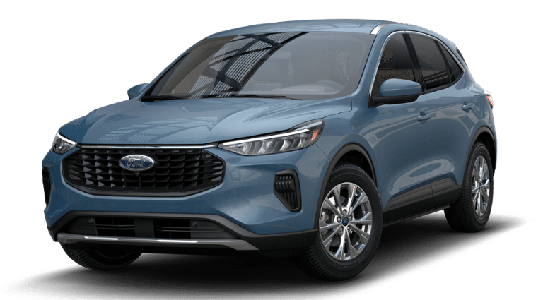 Vapor Blue Metallic 2024 Ford Escape Active FWD 8-Speed Automatic 1.5L EcoBoost 10-Way Power Drivers Seat, 12.3 Productivity Screen in Instrument Cluster, 3.81 Axle Ratio, 360-Degree Camera w/Split View, 4-Wheel Disc Brakes, 6 Speakers, 6-Way Power Passenger Seat, ABS brakes, Adaptive Cruise Control w/Stop-and-Go, Air Conditioning, Alloy wheels, AM/FM radio: SiriusXM, AM/FM Stereo, Auto High-beam Headlights, Automatic temperature control, Body Color Mirrors, Brake assist, Bumpers: body-color, Cold Weather Package, Compass, Connected Navigation, Delay-off headlights, Driver door bin, Driver vanity mirror, Dual front impact airbags, Dual front side impact airbags, Electronic Stability Control, Emergency communication system: SYNC 4 911 Assist, Equipment Group 200A, Exterior Parking Camera Rear, Ford Co-Pilot360 Assist 2.0, FordPass Connect, Four wheel independent suspension, Front anti-roll bar, Front Bucket Seats, Front Center Armrest, Front dual zone A/C, Front License Plate Bracket, Front reading lights, Fully automatic headlights, HD Radio, Heated Front Row Seats, Heated Sideview Mirrors, Heated Steering Wheel, Illuminated entry, Intersection Assist, Knee airbag, Low tire pressure warning, Memory Package, Occupant sensing airbag, Outside temperature display, Overhead airbag, Overhead console, Panic alarm, Passenger door bin, Passenger vanity mirror, Power door mirrors, Power driver seat, Power Liftgate, Power steering, Power windows, Radio data system, Radio: B&O Sound System by Bang & Olufsen, Rear anti-roll bar, Rear Parking Sensor, Rear reading lights, Rear seat center armrest, Rear window defroster, Rear window wiper, Remote keyless entry, Remote Starter System, Reverse Brake Assist, Speed control, Speed Sign Recognition, Speed-sensing steering, Speed-Sensitive Wipers, Split folding rear seat, Spoiler, Steering wheel mounted audio controls, SYNC 4, SYNC 4 w/Enhanced Voice Recognition, Tachometer, Tech Pack #2, Telescoping steering wheel, Tilt steering wheel, Traction control, Trip computer, Unique Cloth Front Bucket Seats, Variably intermittent wipers, Wheels: 17 Shadow Silver-Painted Aluminum, Wireless Charging Pad.