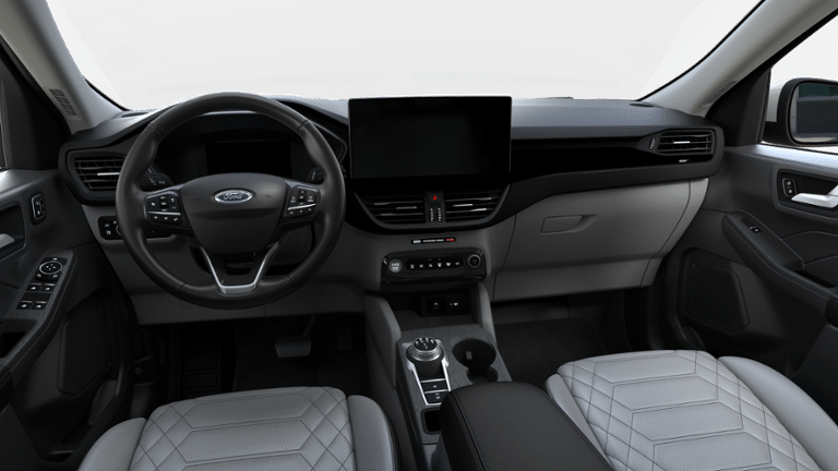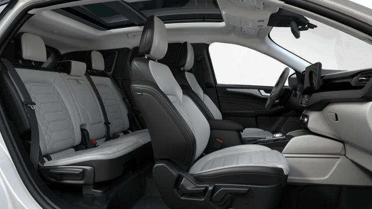 Star White Metallic Tri-Coat 2024 Ford Escape Plug-In Hybrid FWD eCVT 2.5L iVCT 2.5L iVCT, eCVT, 10-Way Power Drivers Seat, 12.3 Productivity Screen in Instrument Cluster, 2.91 Axle Ratio, 360-Degree Camera w/Split View, 4-Wheel Disc Brakes, 6 Speakers, 6-Way Power Passenger Seat, ABS brakes, Active Park Assist 2.0, Air Conditioning, Alloy wheels, AM/FM radio: SiriusXM, AM/FM Stereo, Ambient Lighting with Floor Lights, Auto High-beam Headlights, Auto-Dimming Rear-View Mirror, Automatic temperature control, Black Roof-Rack Side Rails, Brake assist, Bumpers: body-color, Class II Trailer Tow Package, Coast To Coast LED Lightbar Headlamps, Compass, Delay-off headlights, Driver door bin, Driver vanity mirror, Dual front impact airbags, Dual front side impact airbags, Electronic Stability Control, Emergency communication system: SYNC 4 911 Assist, Equipment Group 700A, Exterior Parking Camera Rear, FordPass Connect, Four wheel independent suspension, Front anti-roll bar, Front Bucket Seats, Front Center Armrest, Front dual zone A/C, Front fog lights, Front License Plate Bracket, Front Parking Sensors, Front reading lights, Fully automatic headlights, HD Radio, Head-Up Display, Heated door mirrors, Heated front seats, Heated Leather-Trimmed Front Sport Contour Seats, Heated steering wheel, Heated Vinyl/Cloth Front Sport Contour Bucket Seats, Illuminated entry, Knee airbag, Low tire pressure warning, Memory Package, Navigation system: Connected Navigation, Occupant sensing airbag, Outside temperature display, Overhead airbag, Overhead console, Panic alarm, Panoramic Vista Roof, Passenger door bin, Passenger vanity mirror, Perimeter Alarm, PHEV Premium Package, Polished Stainless Steel Beltline Molding, Power door mirrors, Power driver seat, Power Liftgate, Power steering, Power windows, Radio data system, Radio: B&O Sound System by Bang & Olufsen, Rain-Sensing Wipers (Front Only), Rear anti-roll bar, Rear reading lights, Rear seat center armrest, Rear window defroster, Rear window wiper, Remote keyless entry, Reverse Brake Assist, Roof rack: rails only, Speed control, Speed-sensing steering, Speed-Sensitive Wipers, Split folding rear seat, Spoiler, Steering wheel mounted audio controls, SYNC 4 w/Enhanced Voice Recognition, Telescoping steering wheel, Tilt steering wheel, Traction control, Trip computer, Universal Garage Door Opener (UGDO), Variably intermittent wipers, Wheels: 19 Machined-Face Magnetic Aluminum, Wireless Charging Pad, 2.5L iVCT, eCVT.