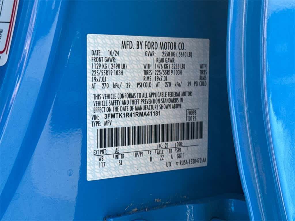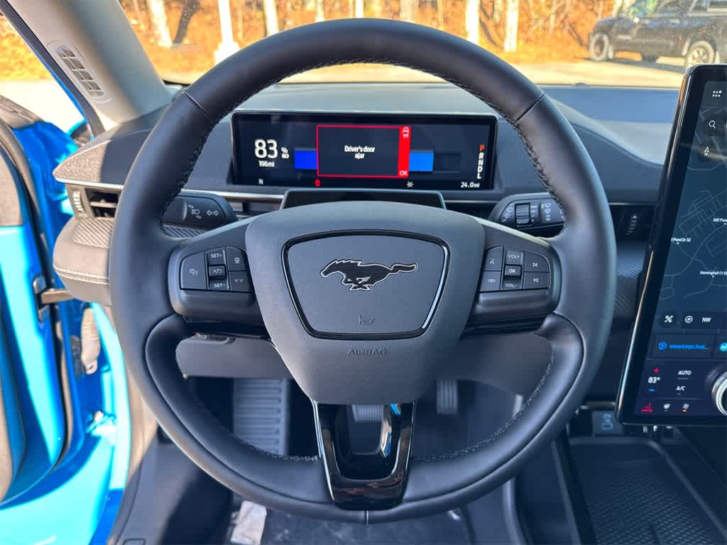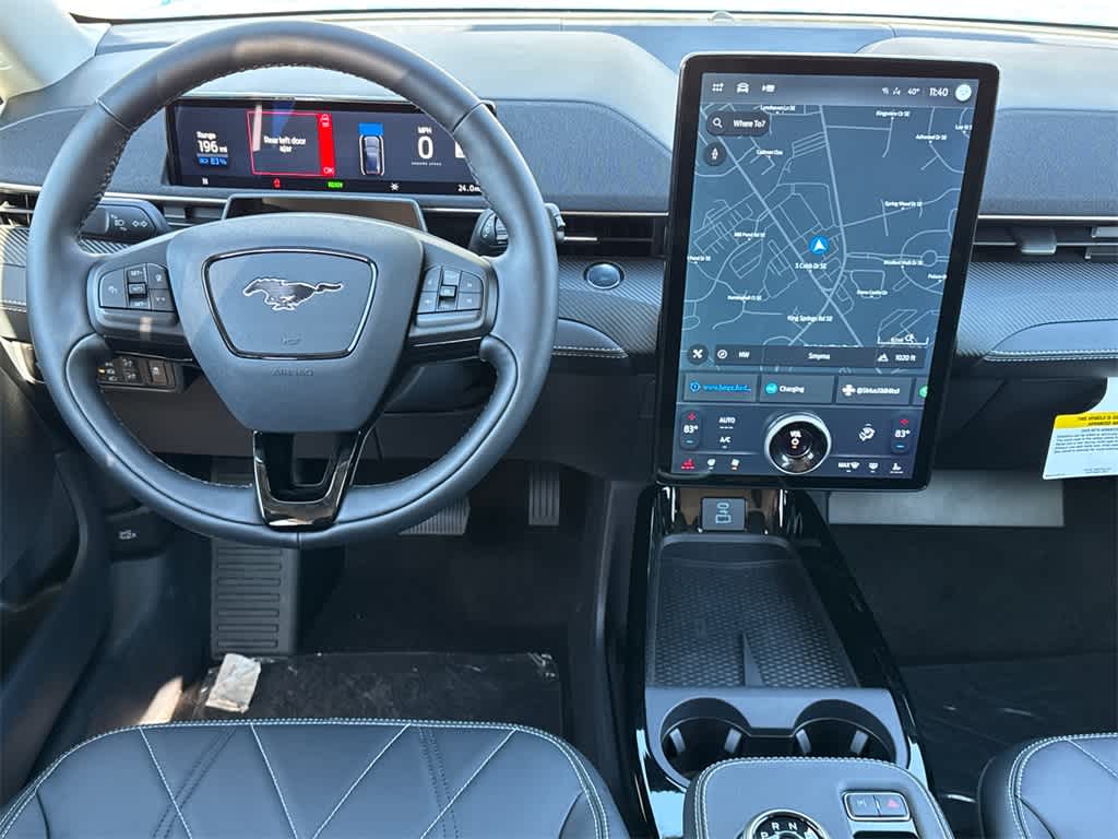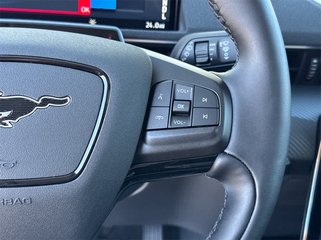 Mustang Mach-E Select is nicely equipped with Comfort Package Lite (Heated Front Row Seats, Heated Steering Wheel, and Memory Drivers Seat & Sideview Mirrors), Equipment Group 100A, Interior Protection Package (Pre-Installed) (1st & 2nd Row Floor Liners w/o Carpet Mats, Cargo Area Cover, and Cargo Floor Liner), 4-Wheel Disc Brakes, 6 Speakers, ABS brakes, ActiveX Bucket Seats, Air Conditioning, Alloy wheels, AM/FM radio: SiriusXM with 360L, AM/FM Stereo, Apple CarPlay/Android Auto, Auto High-beam Headlights, Auto-dimming Rear-View mirror, Automatic temperature control, Axle Ratio: 9.791, Brake assist, Bumpers: body-color, Compass, Delay-off headlights, Driver door bin, Driver vanity mirror, Dual front impact airbags, Dual front side impact airbags, Electronic Stability Control, Emergency communication system: 911 Assist, Exterior Parking Camera Rear, First Aid Kit, Four wheel independent suspension, Front anti-roll bar, Front Bucket Seats, Front Center Armrest, Front dual zone A/C, Front reading lights, Fully automatic headlights, Garage door transmitter, Heated door mirrors, Illuminated entry, Knee airbag, Low tire pressure warning, Mobile Power Cord (120V/240V), Navigation system: Connected Navigation, Occupant sensing airbag, Outside temperature display, Overhead airbag, Overhead console, Panic alarm, Passenger door bin, Passenger vanity mirror, Power door mirrors, Power driver seat, Power steering, Power windows, Radio data system, Rain sensing wipers, Rear anti-roll bar, Rear seat center armrest, Rear side impact airbag, Rear window defroster, Rear window wiper, Remote keyless entry, Roadside Assistance Kit, Security system, SiriusXM Radio w/360L, Speed control, Speed-sensing steering, Speed-Sensitive Wipers, Split folding rear seat, Spoiler, Steering wheel mounted audio controls, SYNC 4A w/Enhanced Voice Recognition, Telescoping steering wheel, Tilt steering wheel, Traction control, Trip computer, Turn signal indicator mirrors, Variably intermittent wipers, Wheel Lock Kit, and Wheels: 19 Machined-Face Aluminum.