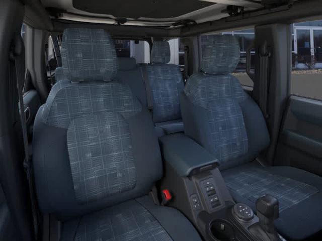 ENGINE: 2.7L ECOBOOST V6 electric brake boost, 4-Wheel Disc Brakes w/Anti-Lock Brake System, electronic stability control, TRANSMISSION: 10-SPEED AUTOMATIC trail control, trail turn assist and trail one-pedal driving, Rear HVAC. 2025 Ford Bronco with Azure Gray Metallic Tri-Coat exterior and Navy Pier interior features a V6 Cylinder Engine with 315 HP at 5500 RPM*. Approx. Original Base Sticker Price: $58,400*.