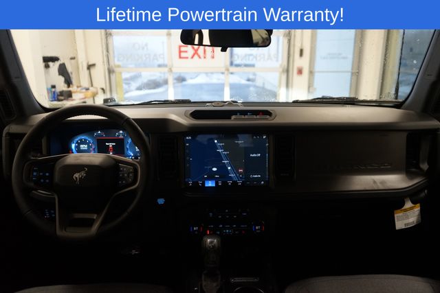 Bronco Big Bend is nicely equipped with 4-Wheel Disc Brakes, 4.46 Axle Ratio, 7 Speakers, ABS brakes, Air Conditioning, Alloy wheels, AM/FM radio: SiriusXM with 360L, AM/FM Stereo, Auto High-beam Headlights, Brake assist, Cloth Bucket Seats, Compass, Delay-off headlights, Driver door bin, Driver vanity mirror, Dual front impact airbags, Dual front side impact airbags, Electronic Stability Control, Emergency communication system: 911 Assist, Exterior Parking Camera Rear, Front anti-roll bar, Front Bucket Seats, Front Center Armrest, Front reading lights, Front wheel independent suspension, Fully automatic headlights, Heated door mirrors, Illuminated entry, Integrated roll-over protection, Internet access capable: FordPass Connect, Leather Shift Knob, Low tire pressure warning, Occupant sensing airbag, Outside temperature display, Overhead airbag, Overhead console, Panic alarm, Passenger door bin, Passenger vanity mirror, Power door mirrors, Power steering, Power windows, Radio data system, Remote keyless entry, Security system, SiriusXM w/360L, Speed control, Split folding rear seat, Steering wheel mounted audio controls, SYNC 4, Tachometer, Telescoping steering wheel, Tilt steering wheel, Traction control, Trip computer, Variably intermittent wipers, and Wheels: 17" Carbonized Gray-Painted Aluminum.