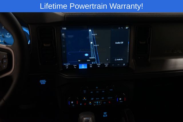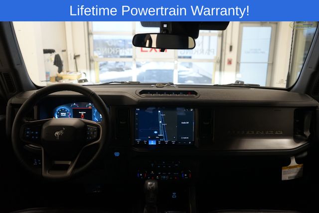 Bronco Badlands is nicely equipped with 4-Wheel Disc Brakes, 4.7 Axle Ratio, 7 Speakers, ABS brakes, Air Conditioning, Alloy wheels, AM/FM radio: SiriusXM with 360L, AM/FM Stereo, Auto High-beam Headlights, Auto-dimming Rear-View mirror, Brake assist, Compass, Delay-off headlights, Driver door bin, Driver vanity mirror, Dual front impact airbags, Dual front side impact airbags, Electronic Stability Control, Emergency communication system: 911 Assist, Exterior Parking Camera Rear, Front anti-roll bar, Front Bucket Seats, Front Center Armrest, Front fog lights, Front reading lights, Front wheel independent suspension, Fully automatic headlights, Heated door mirrors, Heated front seats, Heated steering wheel, Illuminated entry, Integrated roll-over protection, Internet access capable: FordPass Connect, Leather Shift Knob, Low tire pressure warning, Marine Grade Vinyl Heated Bucket Seats, Occupant sensing airbag, Outside temperature display, Overhead airbag, Overhead console, Panic alarm, Passenger door bin, Passenger vanity mirror, Power door mirrors, Power steering, Power windows, Radio data system, Remote keyless entry, Security system, SiriusXM w/360L, Speed control, Split folding rear seat, Steering wheel mounted audio controls, SYNC 4, Tachometer, Telescoping steering wheel, Tilt steering wheel, Traction control, Trip computer, Variably intermittent wipers, Voltmeter, and Wheels: 17" Carbonized Gray-Painted Aluminum.